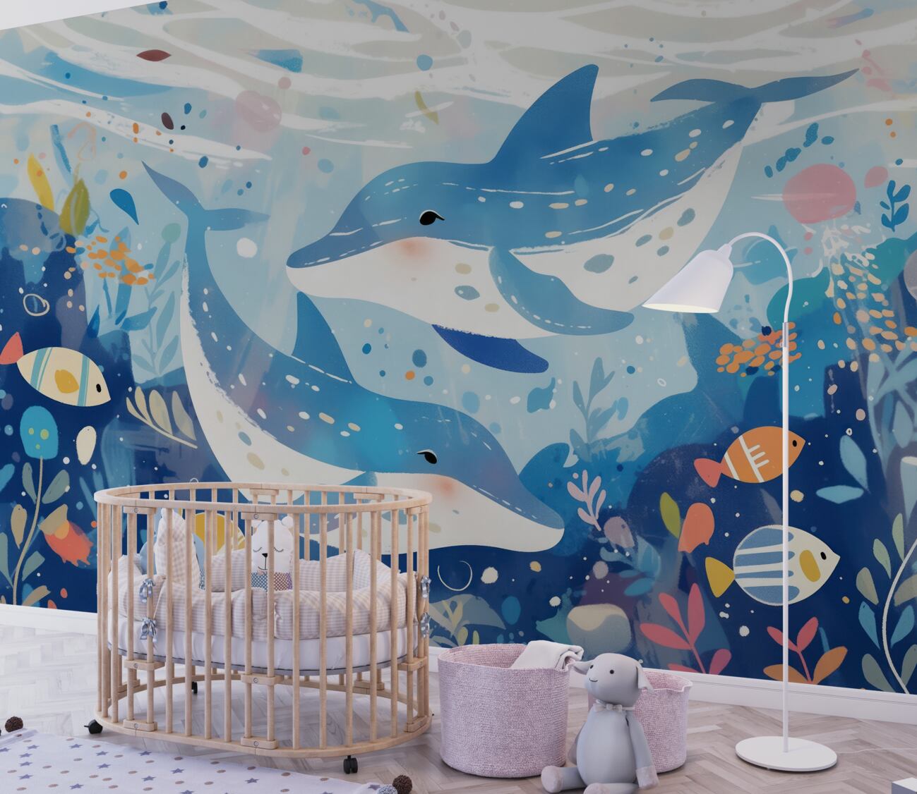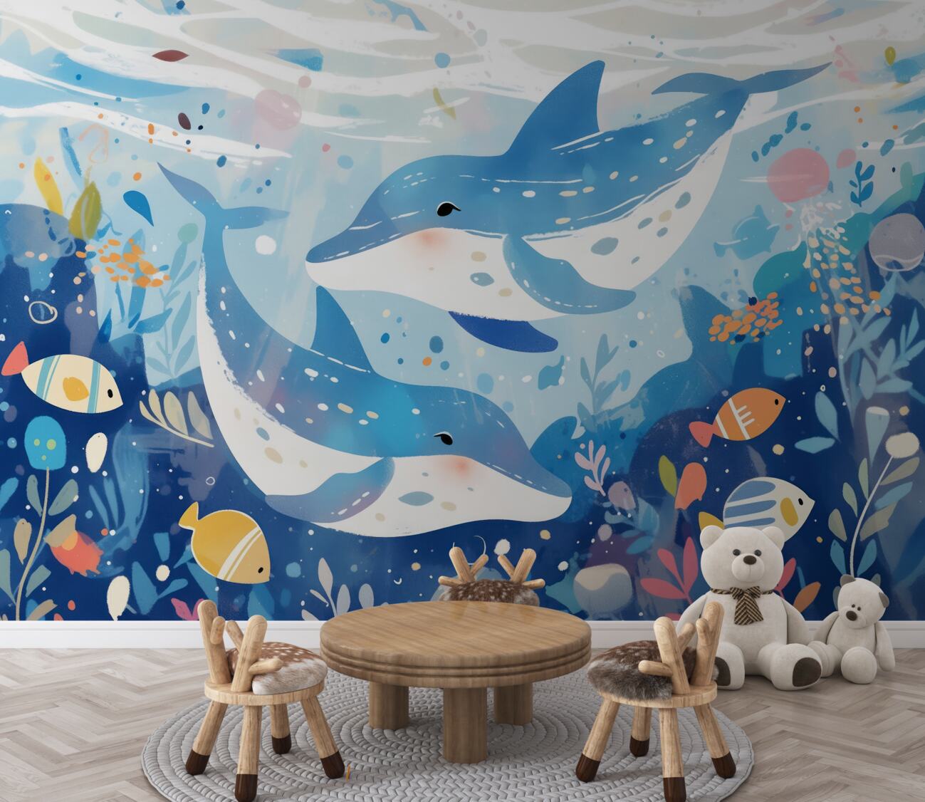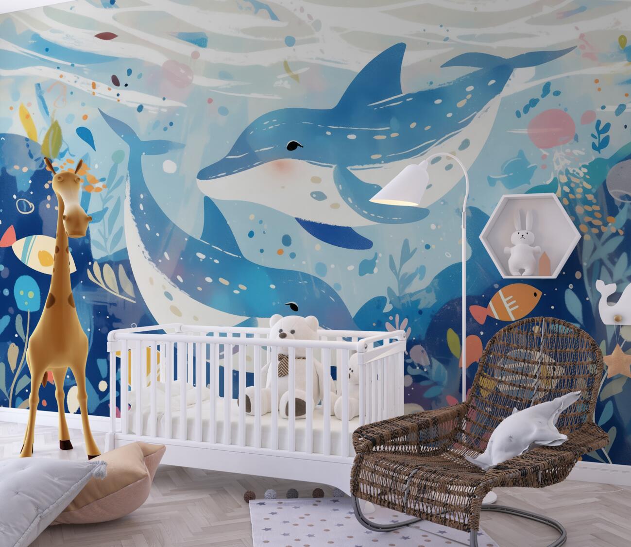 Tapeta Fototapeta Dwa delfiny w Królestwie Podwodnym (artykuł u14660 ) z kategorii Fototapety dla Dzieci