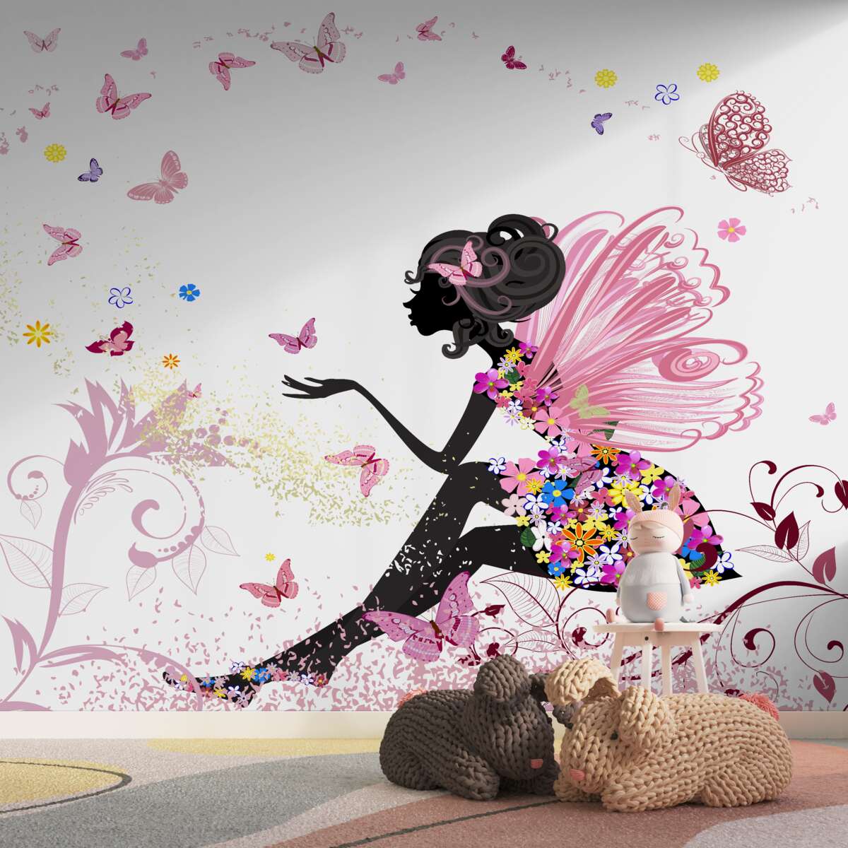 Tapeta Fototapeta Dziewczyna goniąca motyle (artykuł a94838 ) z kategorii Fototapety dla Dzieci