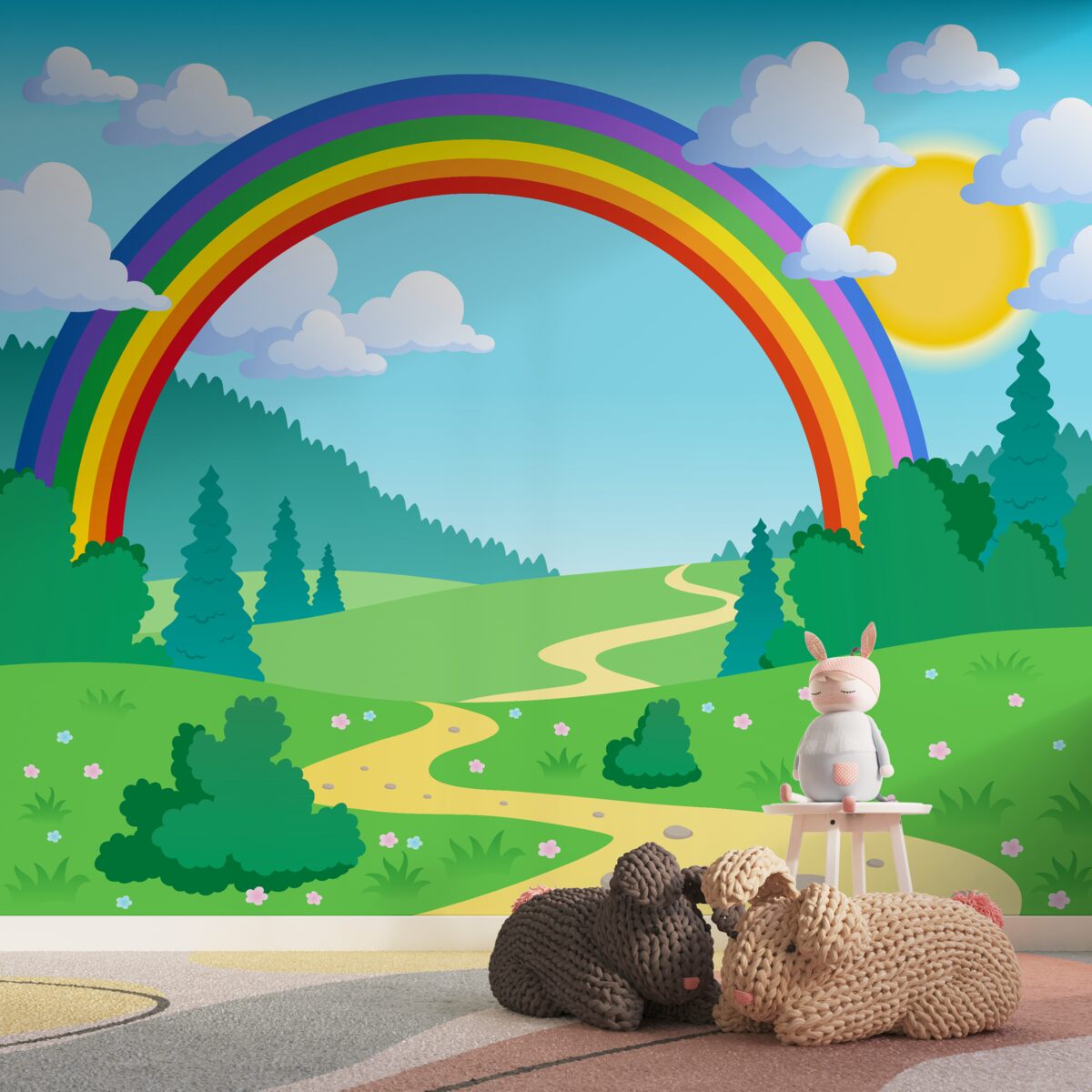 Tapeta Fototapeta Jasna tęcza na leśnej polanie (artykuł a94906 ) z kategorii Fototapety dla Dzieci