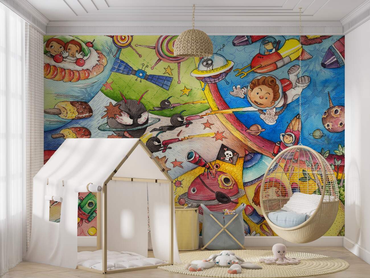 Tapeta Fototapeta Jasne kosmiczne wojny dzieci i potworów (artykuł a99988 ) z kategorii Fototapety dla Dzieci