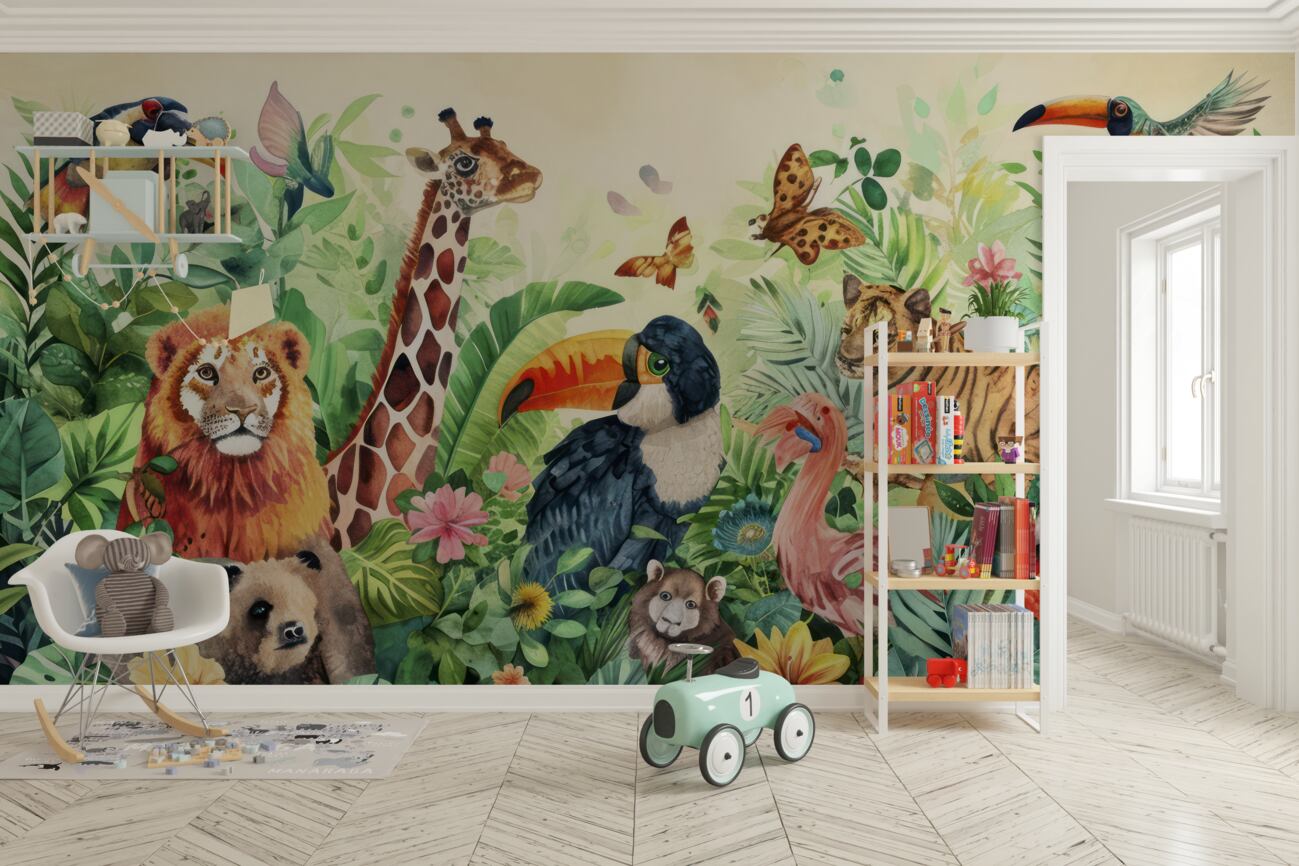 Tapeta Fototapeta Jasny obraz różnych zwierząt i ptaków (artykuł u14630 ) z kategorii Fototapety dla Dzieci