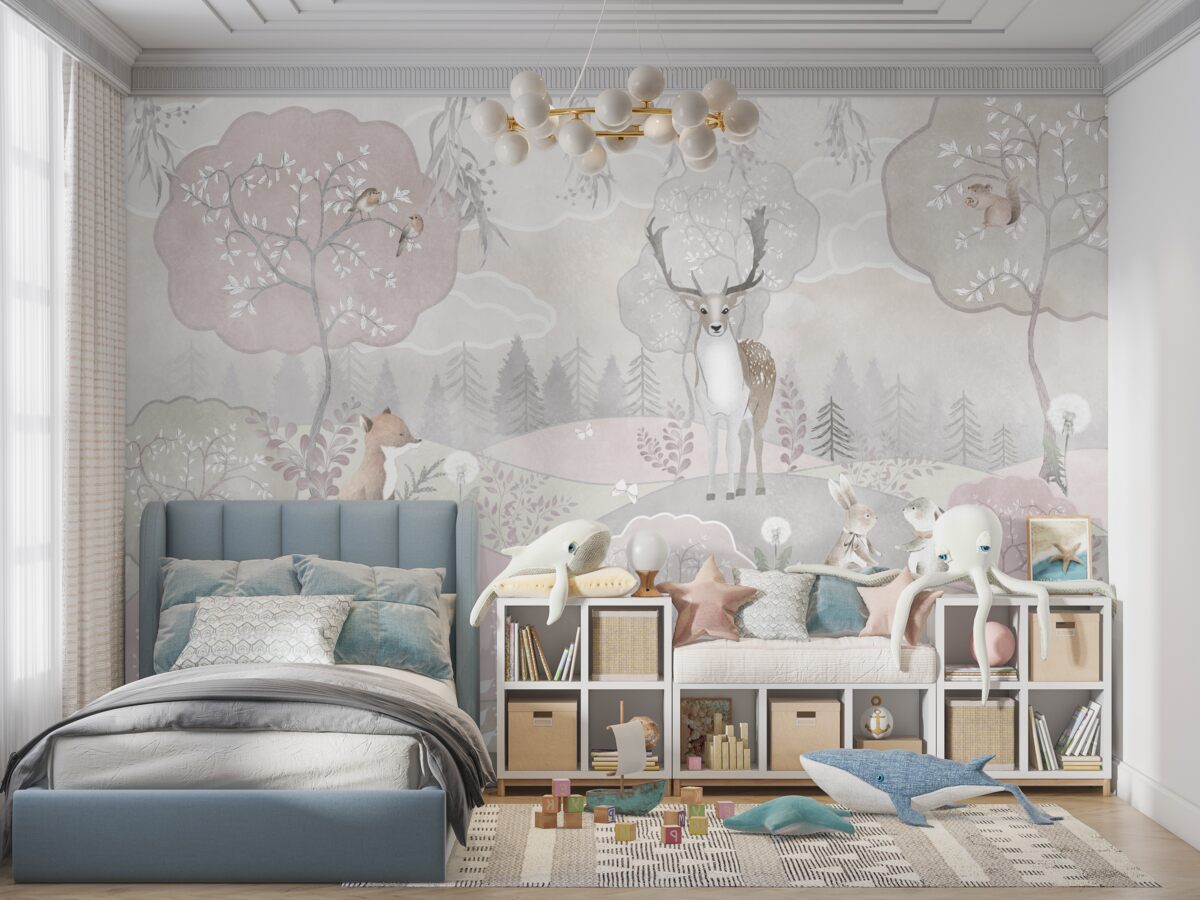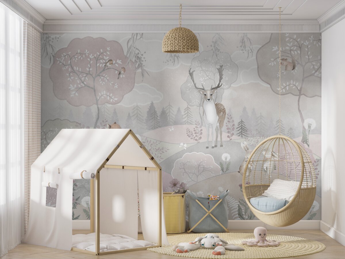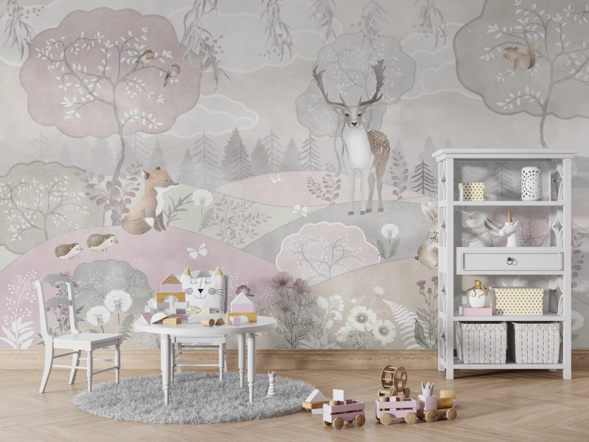 Tapeta Fototapeta Jeleń spotyka swoich młodszych przyjaciół (artykuł a98185 ) z kategorii Fototapety dla Dzieci