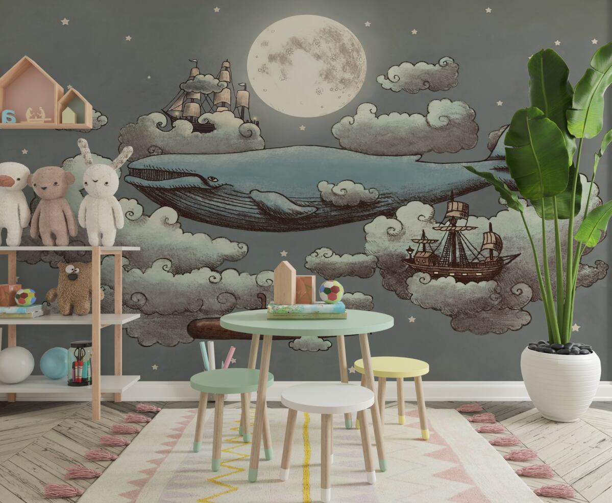 Tapeta Fototapeta Kaszalot i transport wodny unoszą się w chmurach (artykuł a97282 ) z kategorii Fototapety dla Dzieci