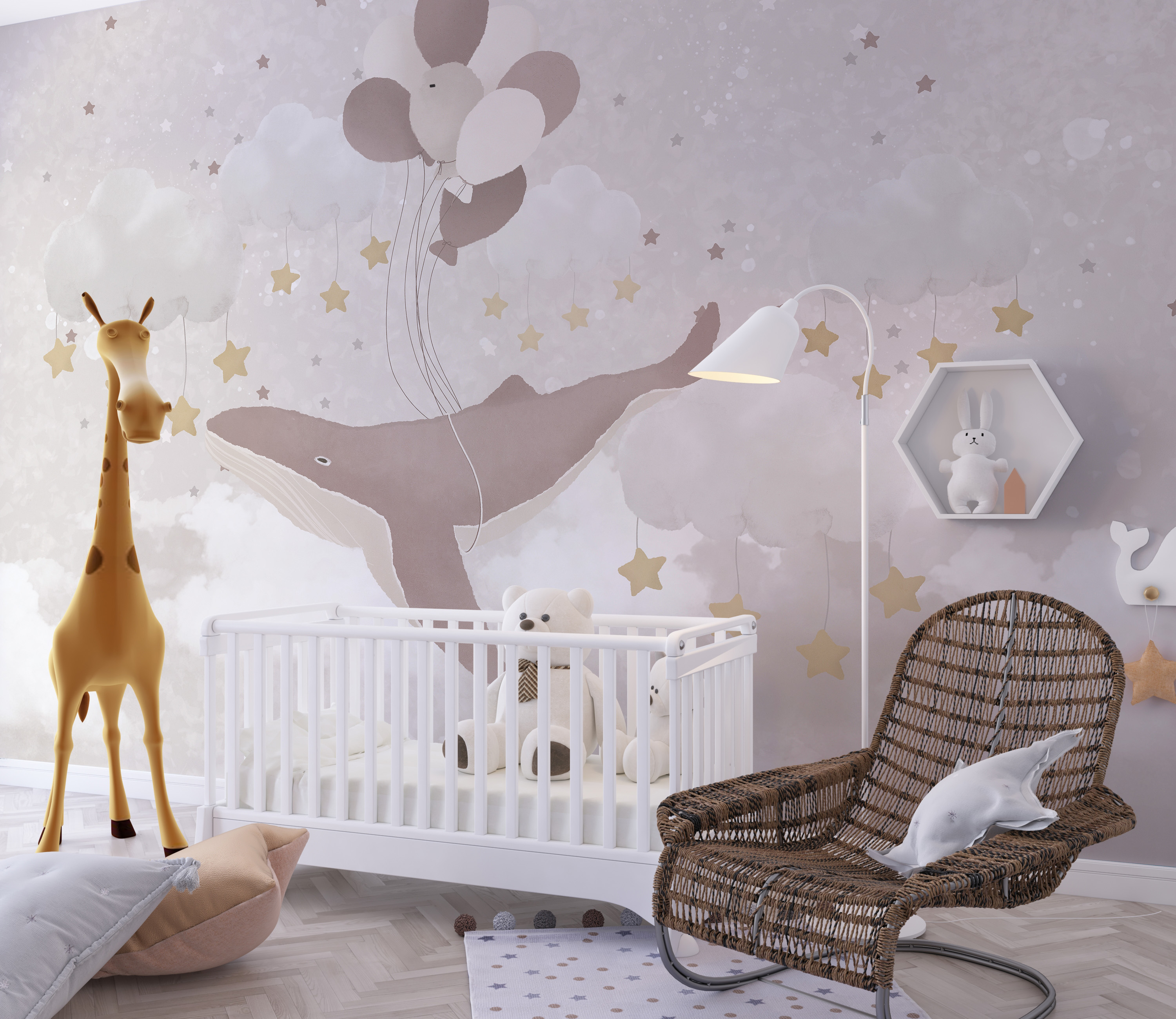 Tapeta Fototapeta Kaszalot leci na balonach (artykuł a94035 ) z kategorii Fototapety dla Dzieci