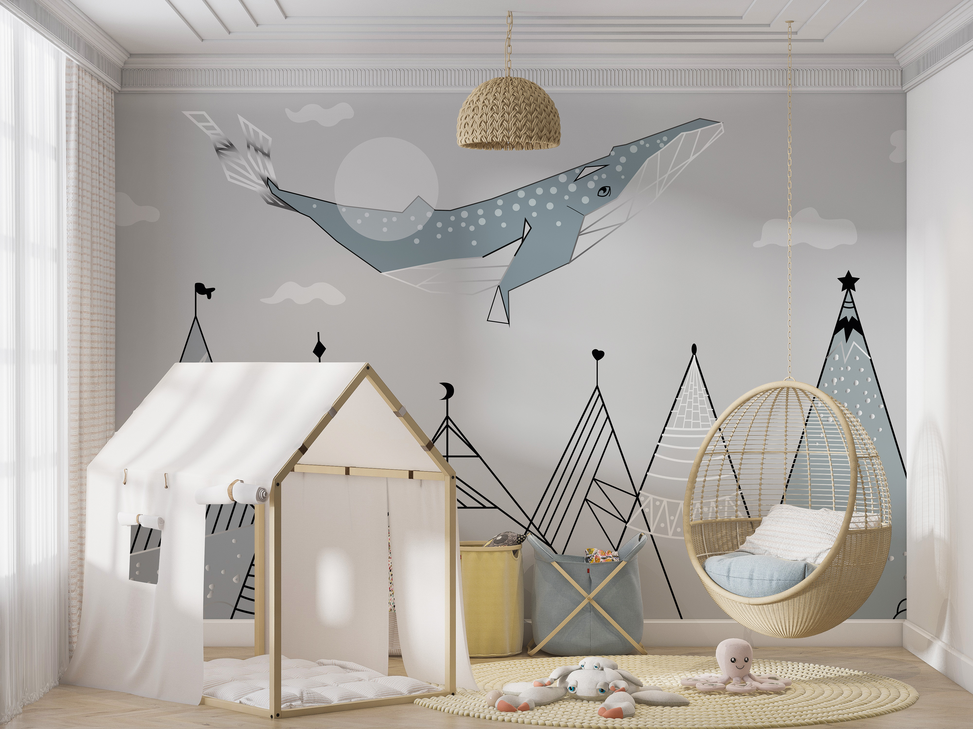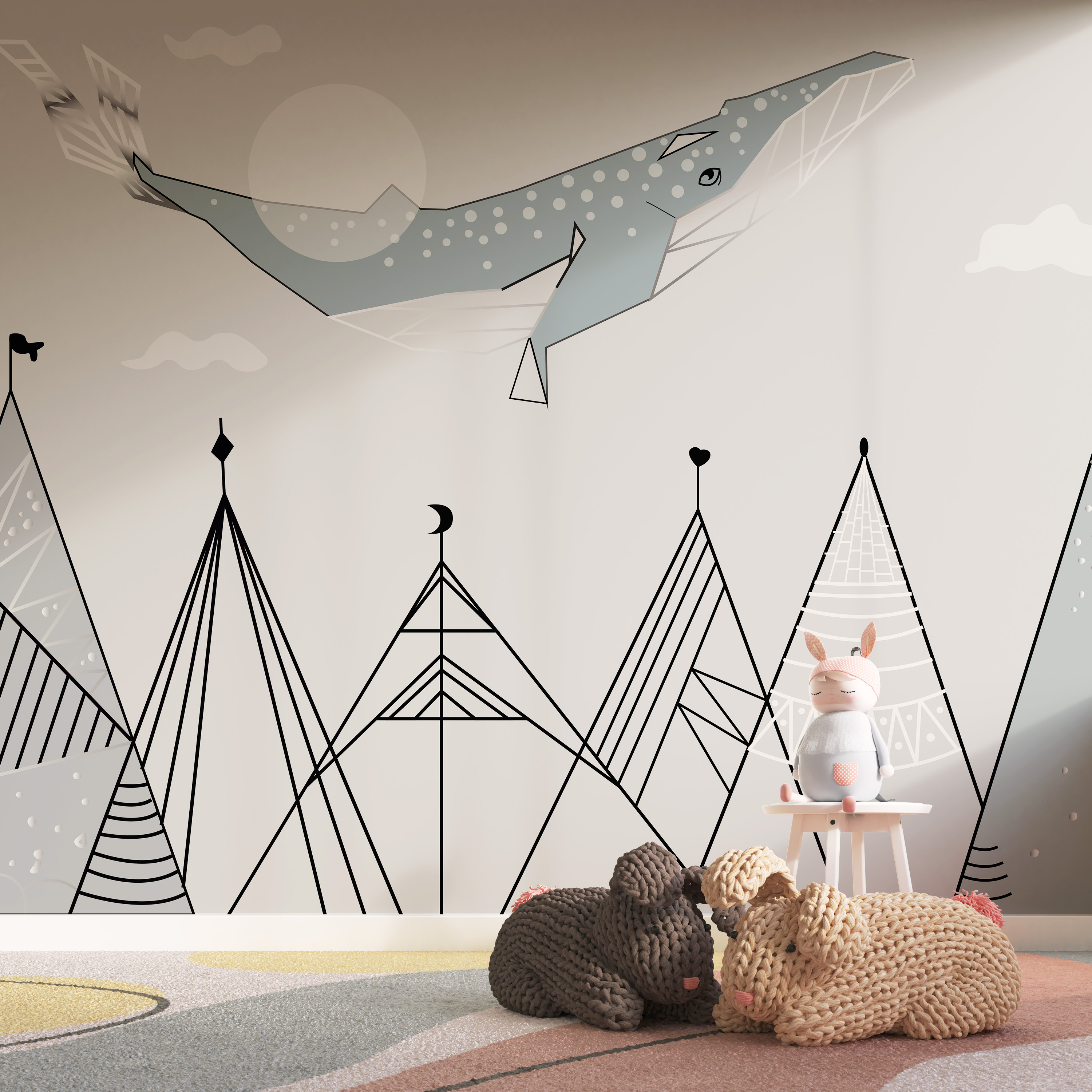 Tapeta Fototapeta Kaszalot wznosi się nad górami (artykuł a94016 ) z kategorii Fototapety dla Dzieci
