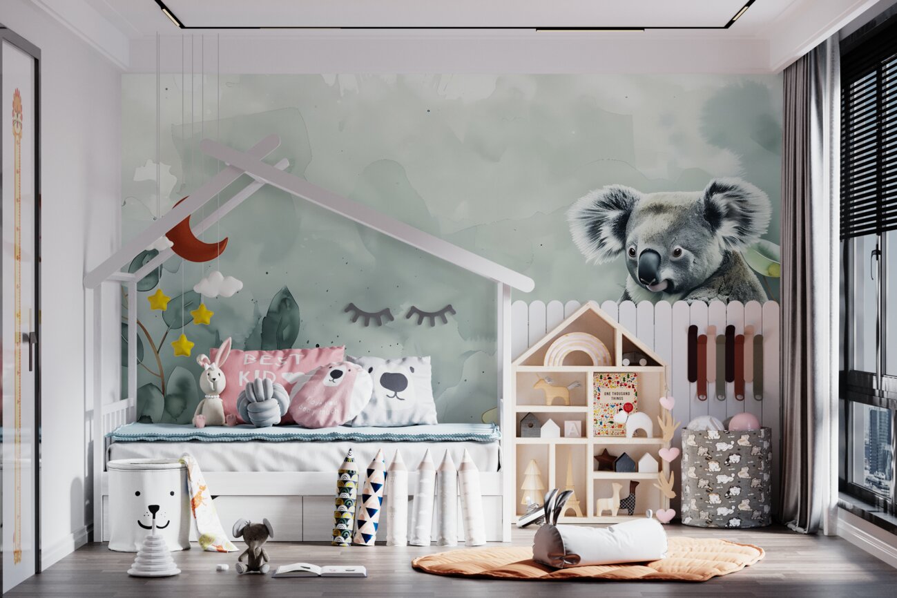 Tapeta Fototapeta Koala siedzi na zielonej gałęzi (artykuł u14658 ) z kategorii Fototapety dla Dzieci