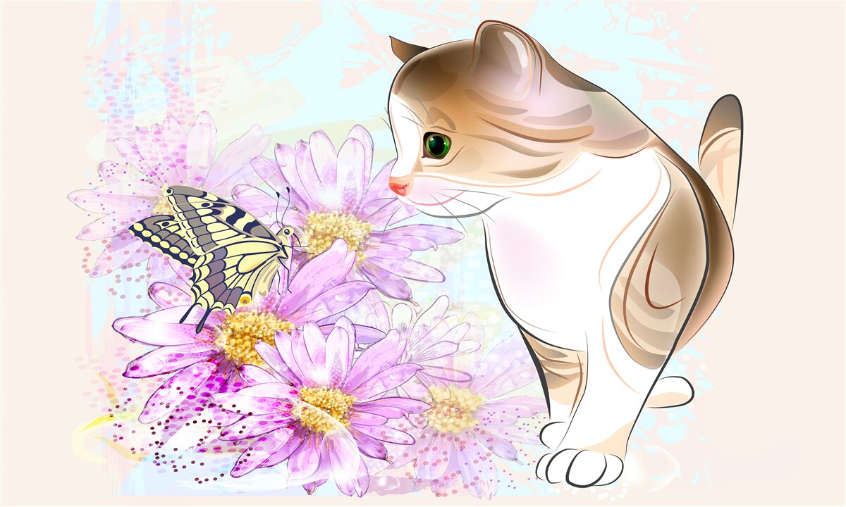 Tapeta Fototapeta Kot patrzy na motyla (artykuł a96717 ) z kategorii Fototapety dla Dzieci