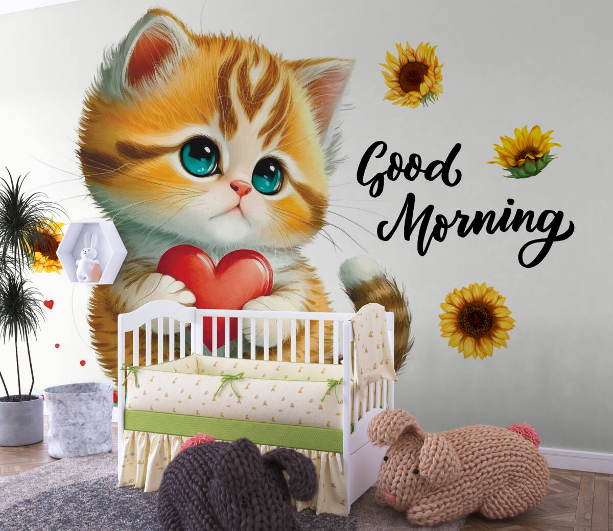 Tapeta Fototapeta Kotek z życzeniami (artykuł a98769 ) z kategorii Fototapety dla Dzieci