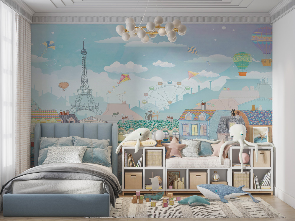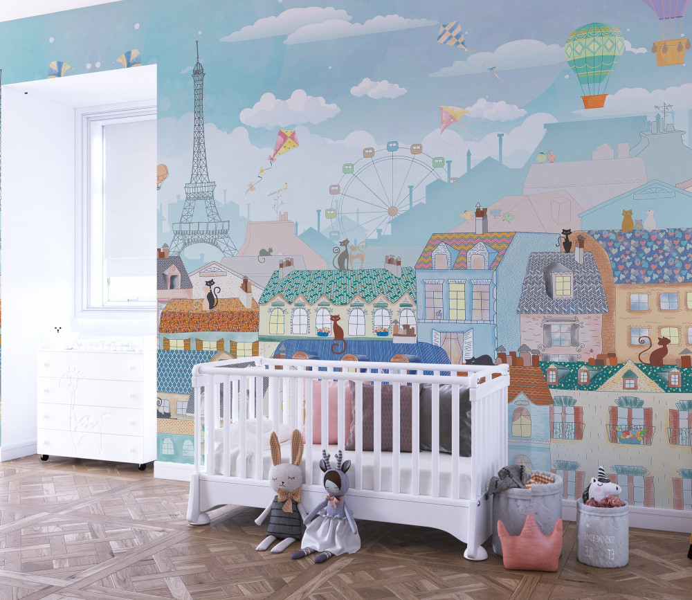 Tapeta Fototapeta koty na dachach podziwiające widoki Paryża (artykuł a93912 ) z kategorii Fototapety dla Dzieci