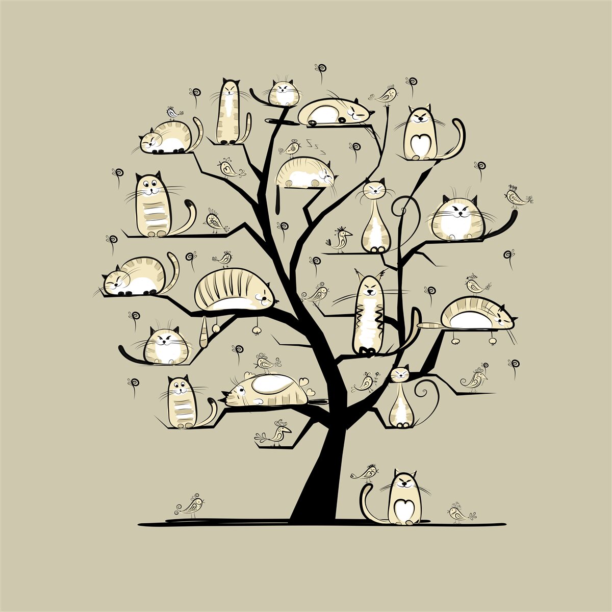 Tapeta Fototapeta Koty na drzewie (artykuł a91547 ) z kategorii Fototapety dla Dzieci