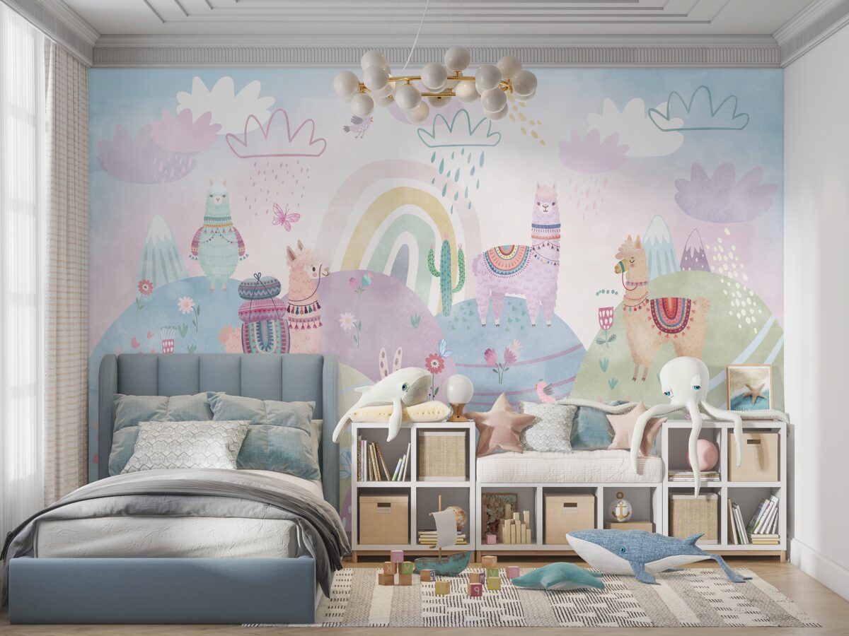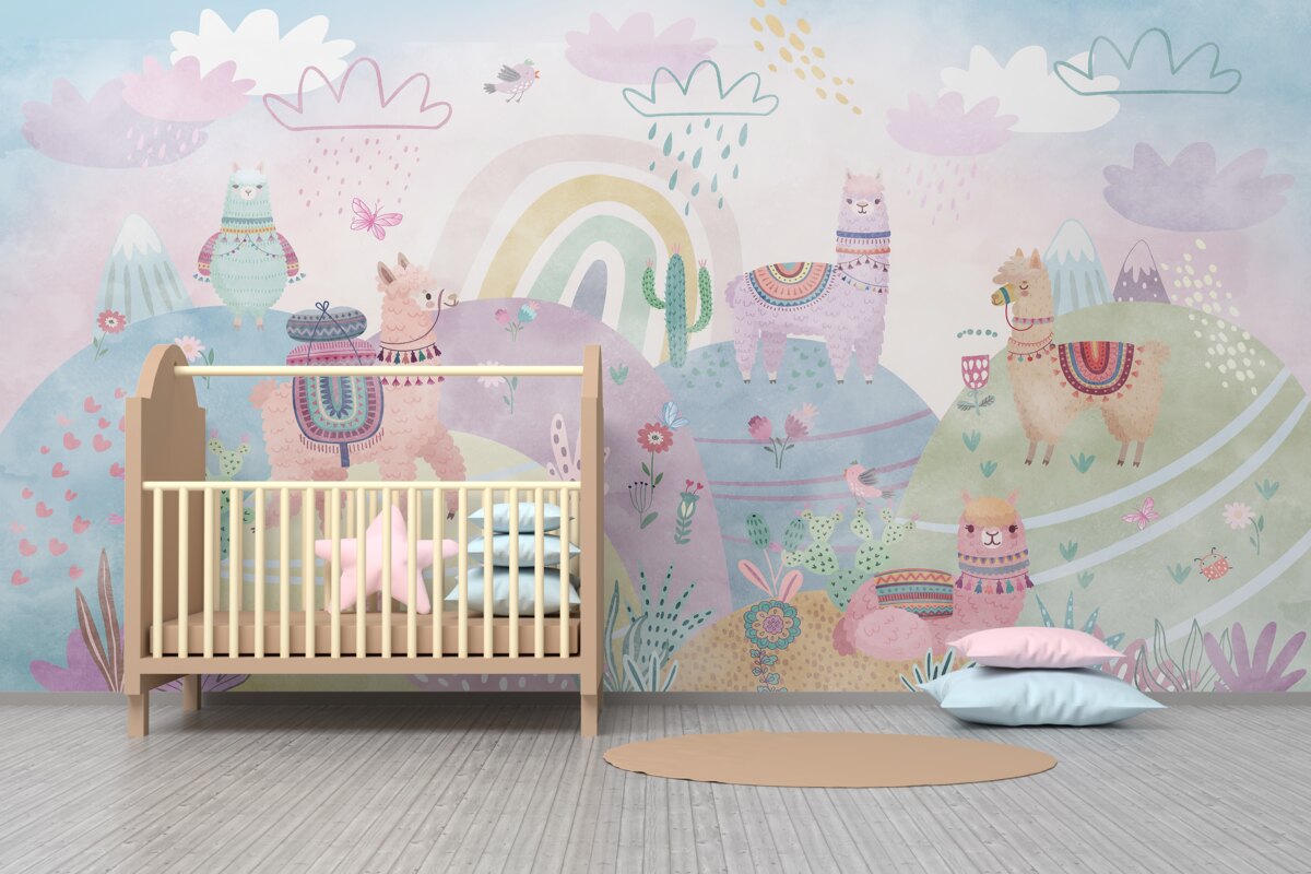 Tapeta Fototapeta Lama spacerująca po polu (artykuł a98211 ) z kategorii Fototapety dla Dzieci