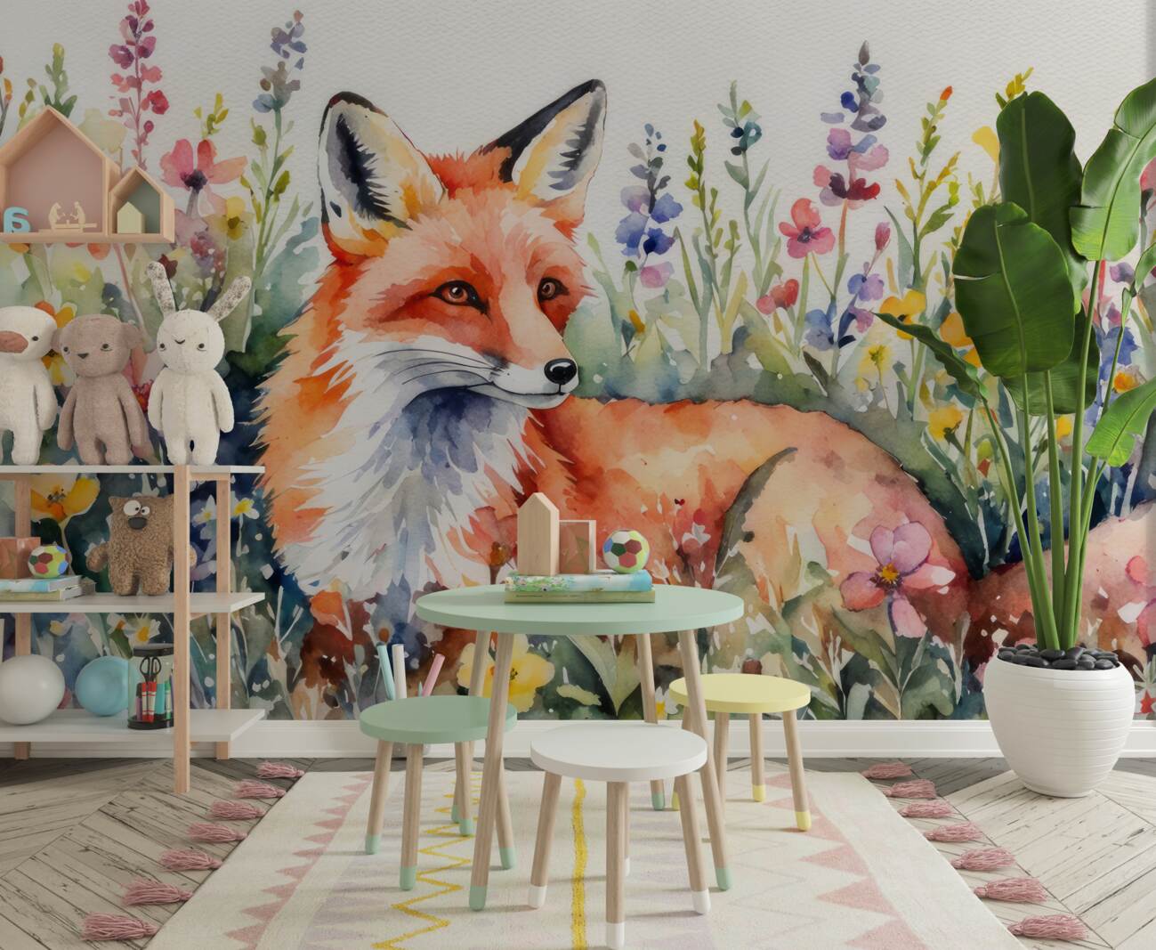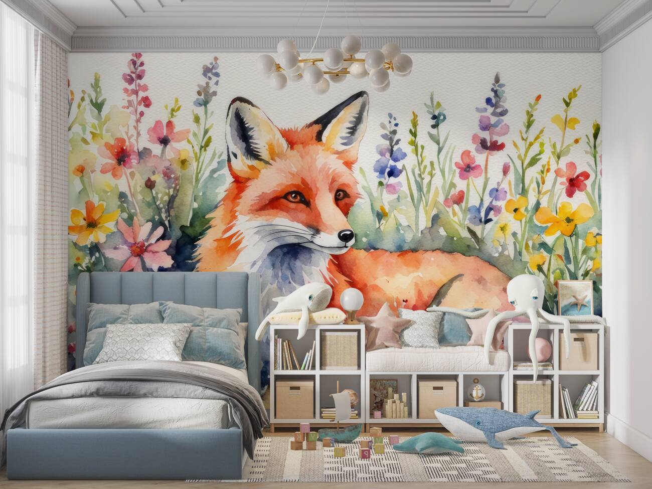Tapeta Fototapeta Lis w kwiatach (artykuł u14664 ) z kategorii Fototapety dla Dzieci