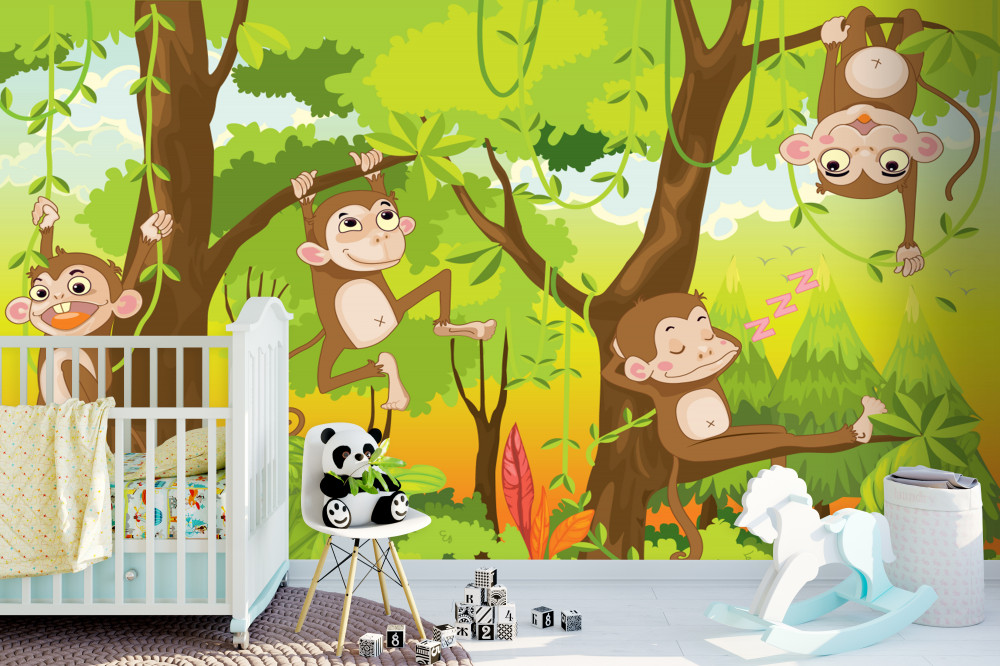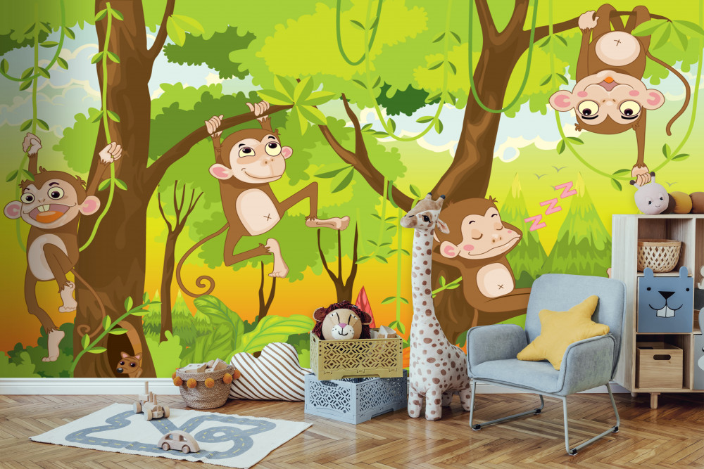Tapeta Fototapeta małpy wspinają się na drzewa (artykuł a93040 ) z kategorii Fototapety dla Dzieci