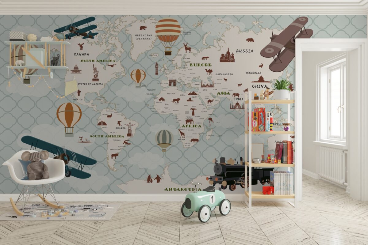 Tapeta Fototapeta Mapa świata dla dzieci (artykuł a94287 ) z kategorii Fototapety dla Dzieci