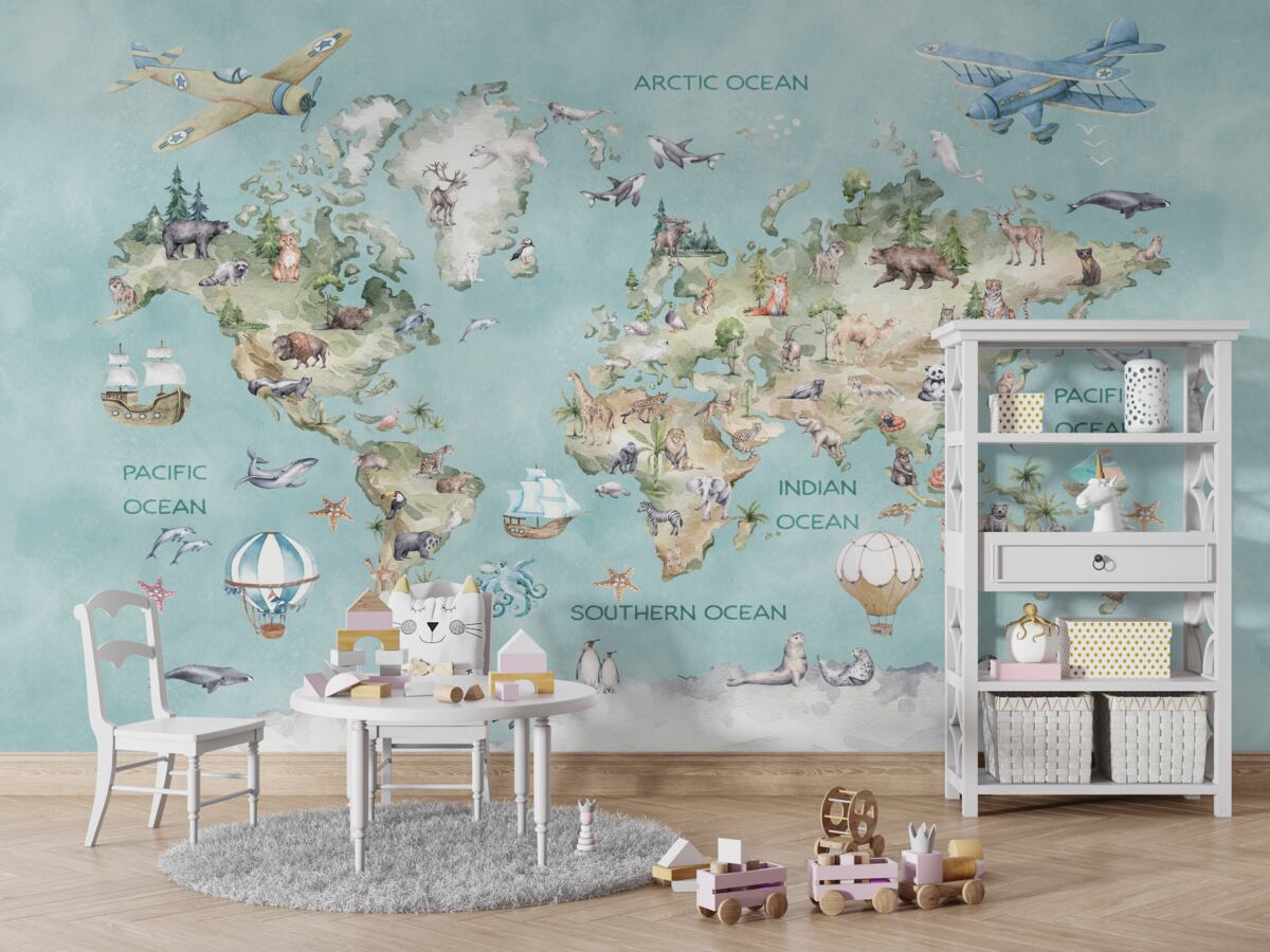 Tapeta Fototapeta Mapa świata dla dzieci z oceanami (artykuł a98186 ) z kategorii Fototapety dla Dzieci