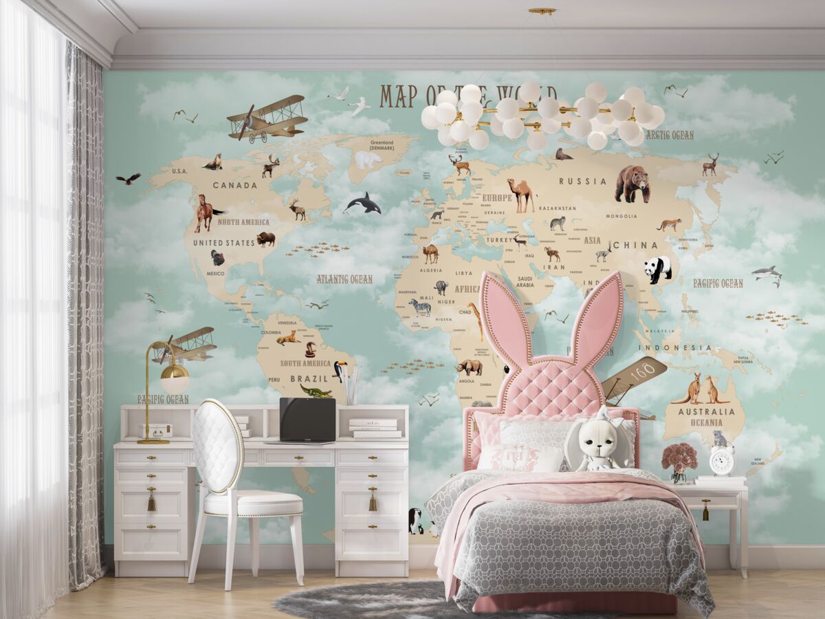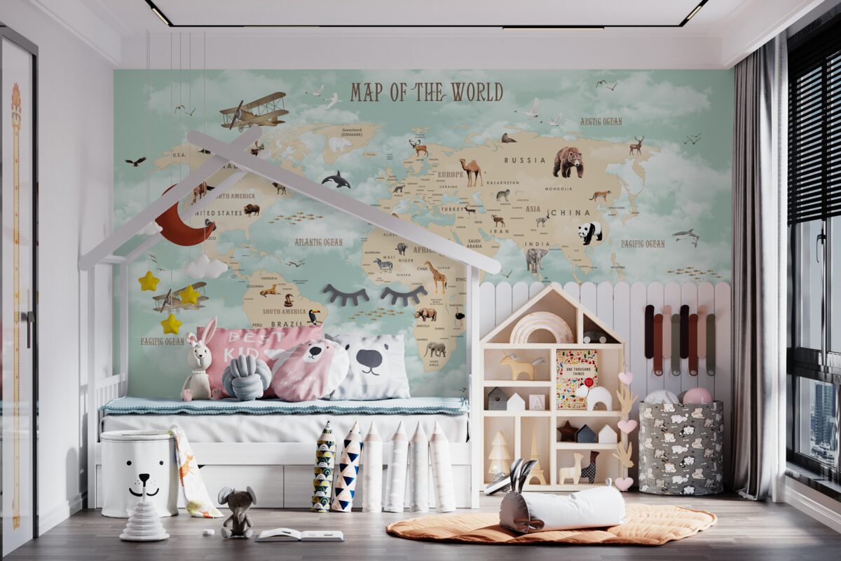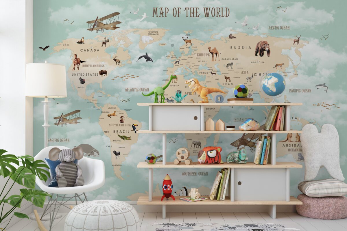 Tapeta Fototapeta Mapa świata na zielonym tle (artykuł a96657 ) z kategorii Fototapety dla Dzieci