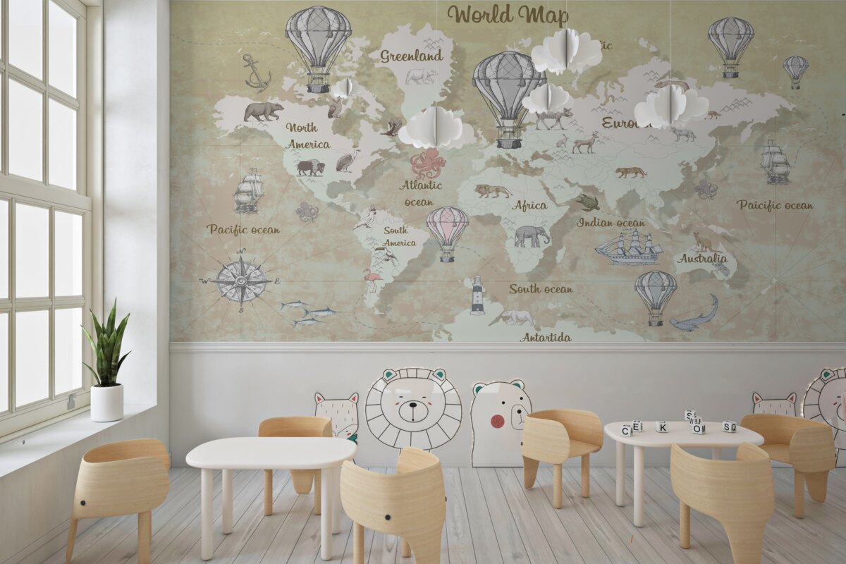 Tapeta Fototapeta Mapa świata w ciepłych kolorach (artykuł a98690 ) z kategorii Fototapety dla Dzieci