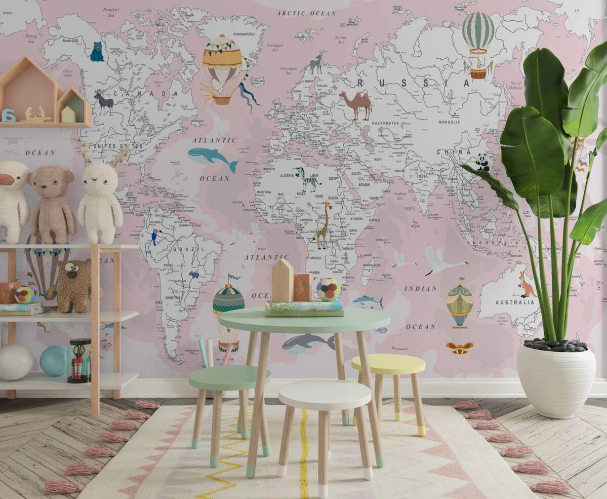 Tapeta Fototapeta Mapa świata w odcieniach różu (artykuł a98704 ) z kategorii Fototapety dla Dzieci