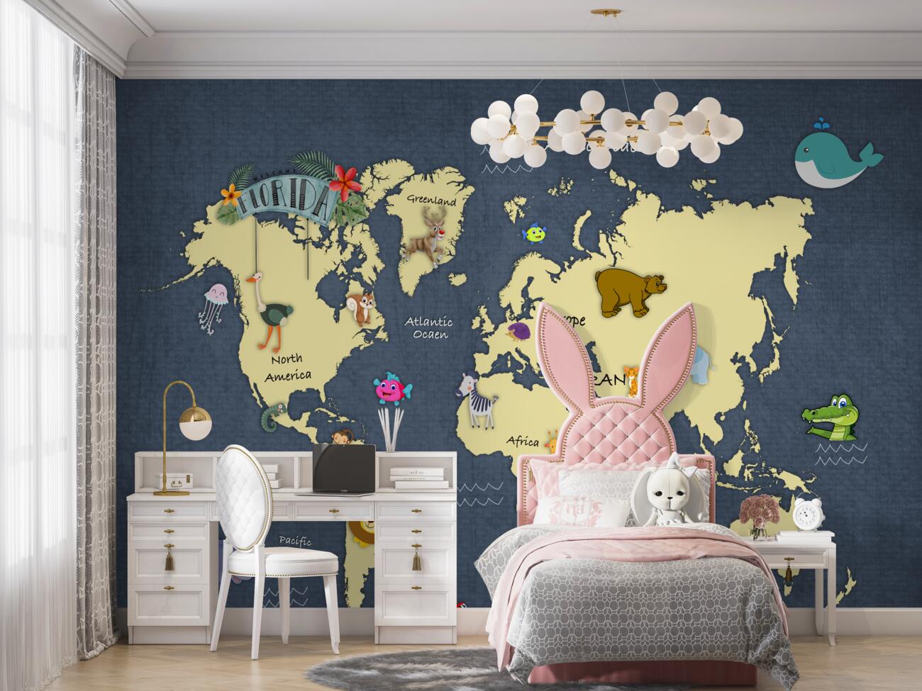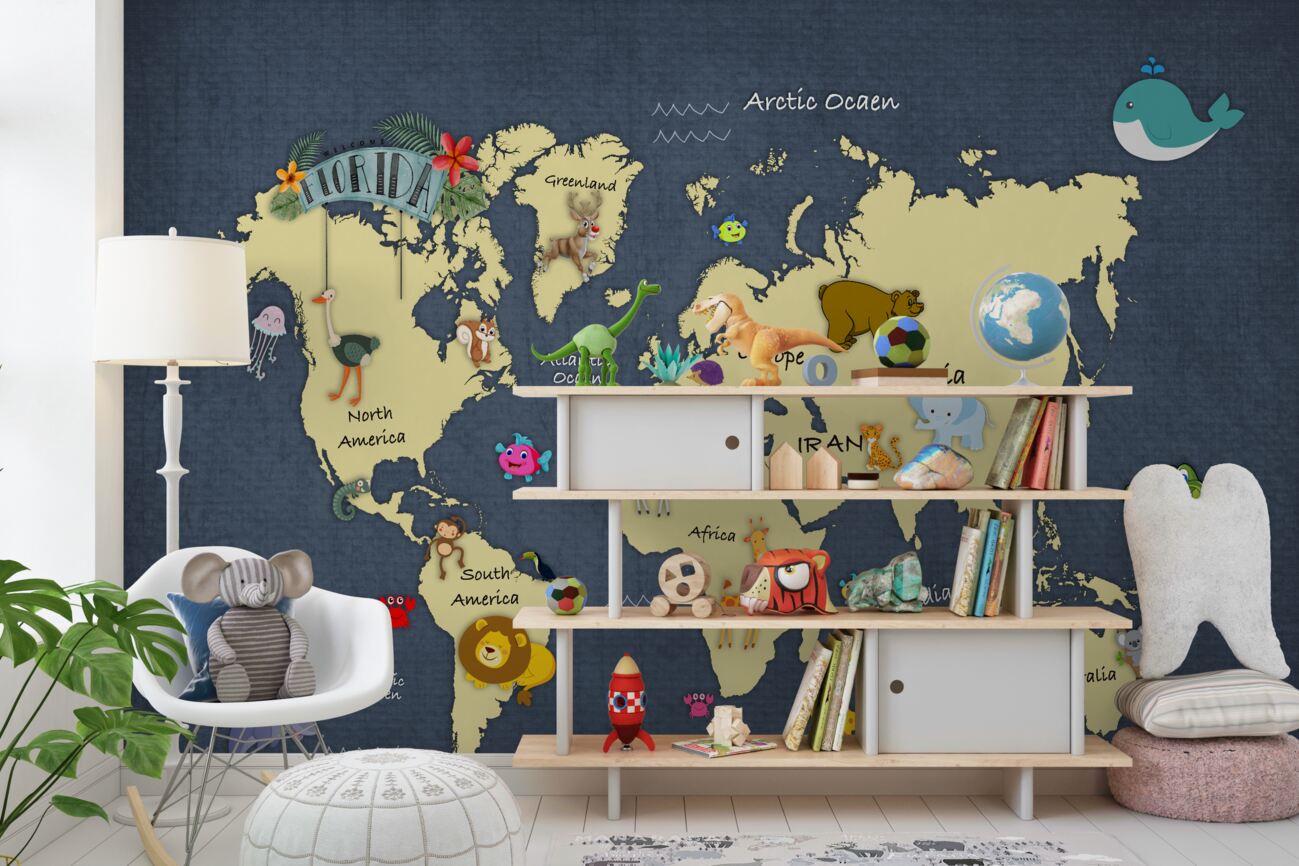 Tapeta Fototapeta Mapa świata z zastosowanymi zwierzętami (artykuł a99989 ) z kategorii Fototapety dla Dzieci