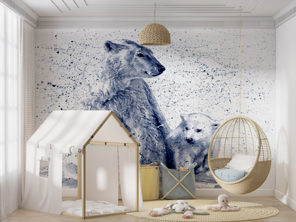 Tapeta Fototapeta matka i młode niedźwiedzie polarne (artykuł a93932 ) z kategorii Fototapety dla Dzieci
