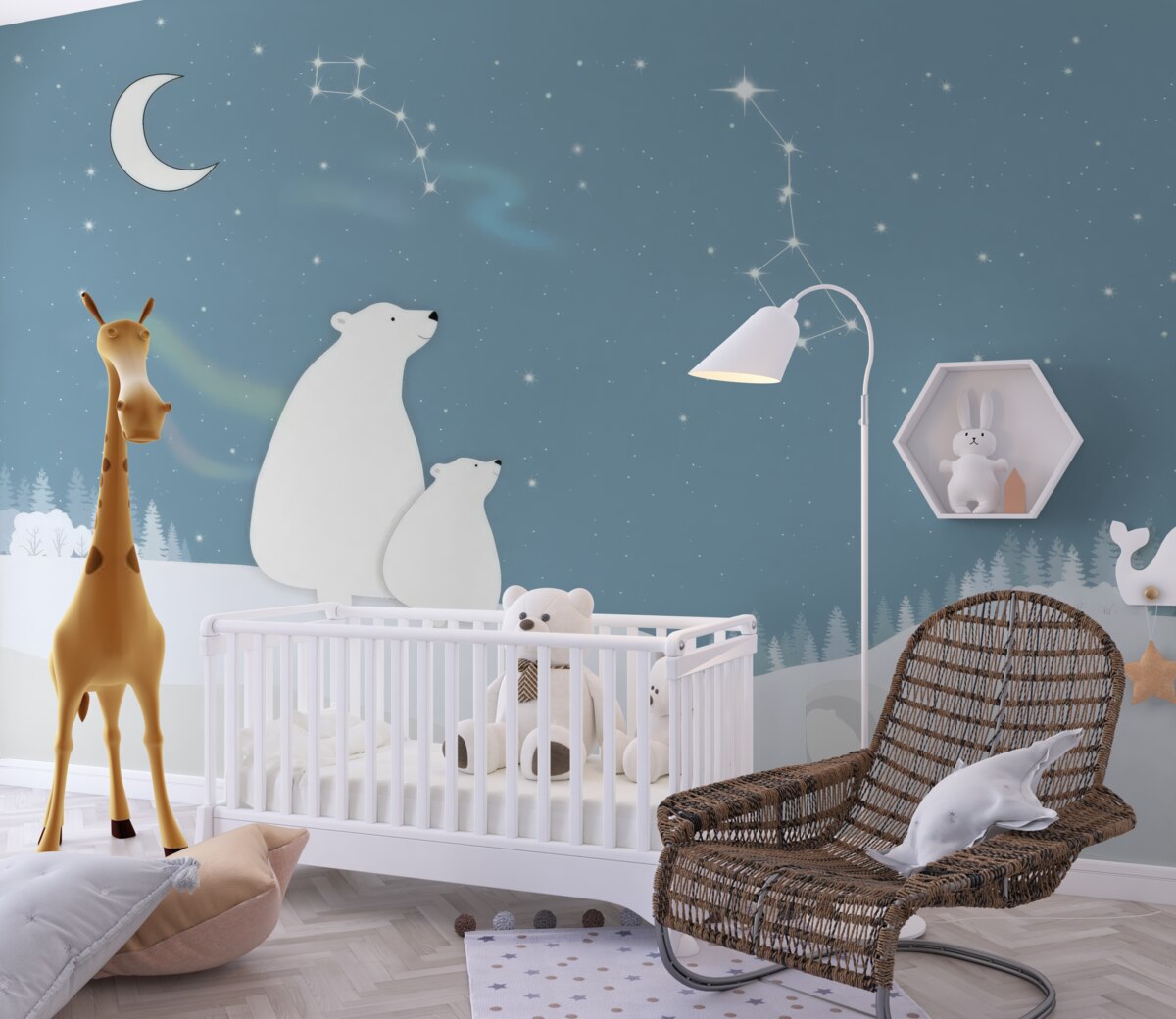 Tapeta Fototapeta Matka niedźwiedź i młode patrzą na gwiazdy (artykuł a97903 ) z kategorii Fototapety dla Dzieci