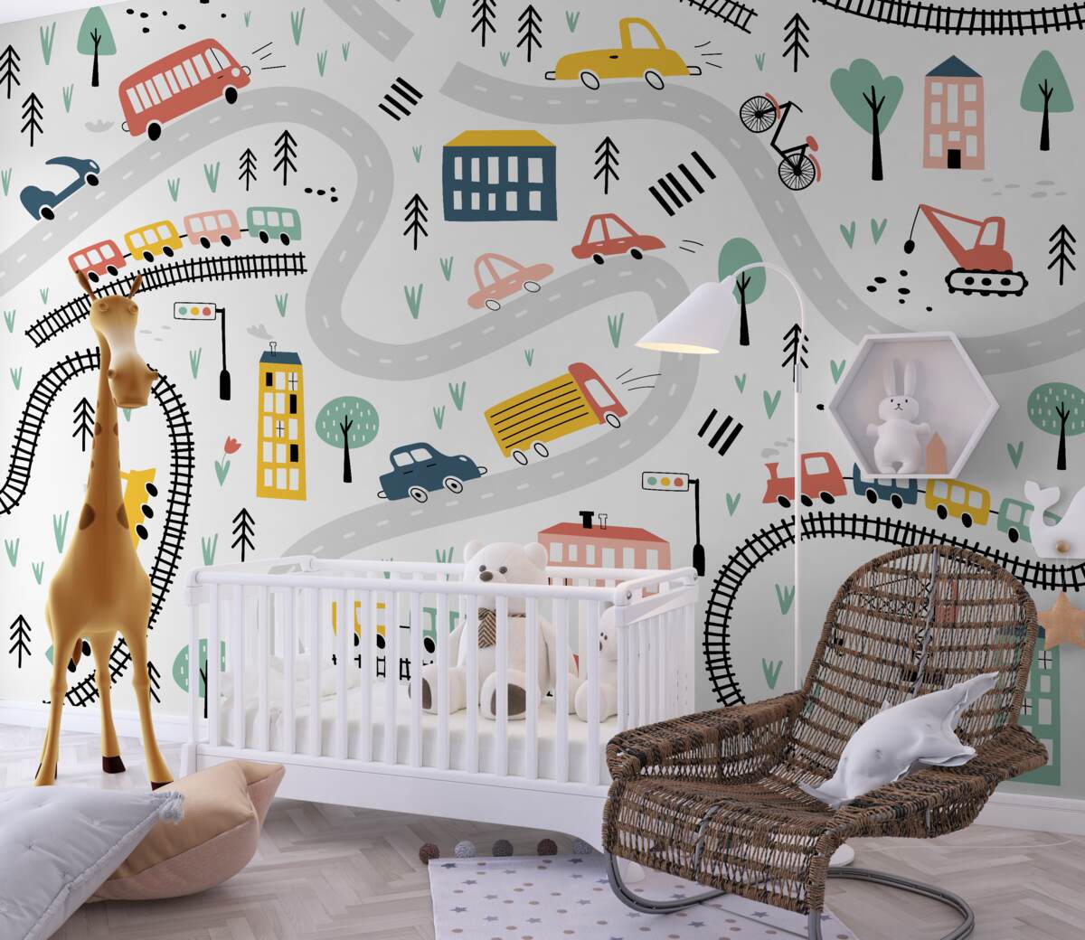 Tapeta Fototapeta Miasto z drogami i transportem (artykuł a98048 ) z kategorii Fototapety dla Dzieci