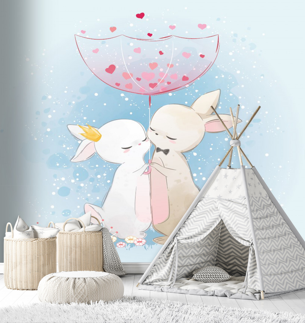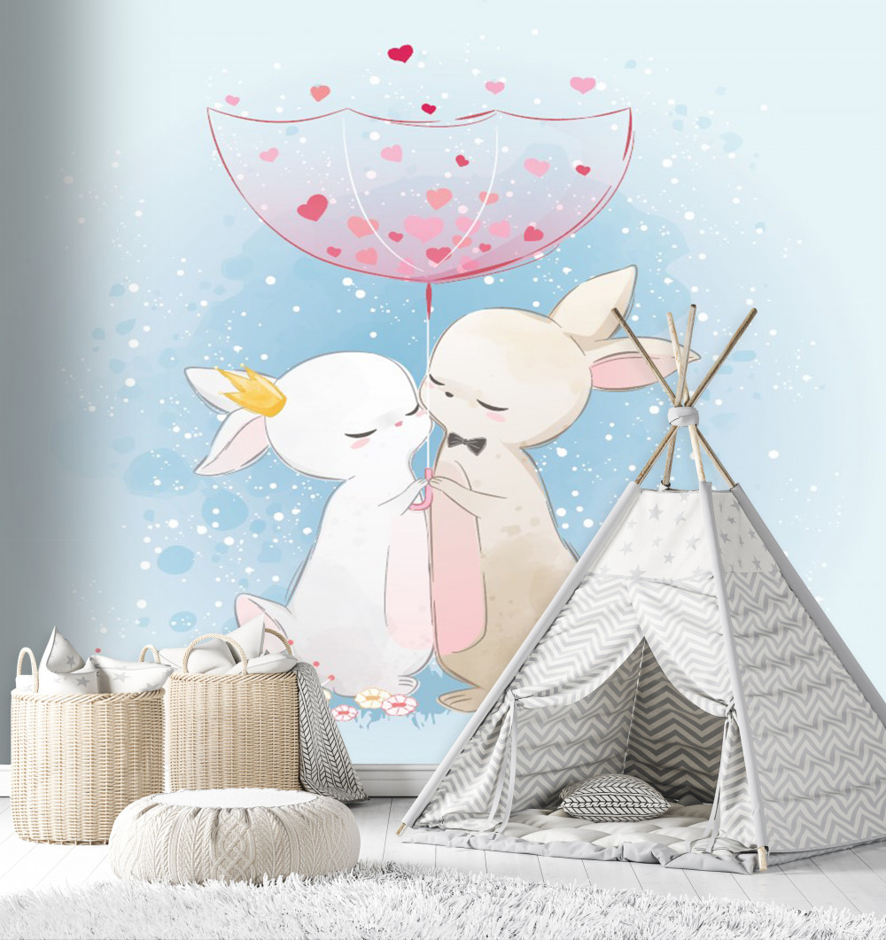 Tapeta Fototapeta miłośnicy króliczków pod parasolem (artykuł a92977 ) z kategorii Fototapety dla Dzieci
