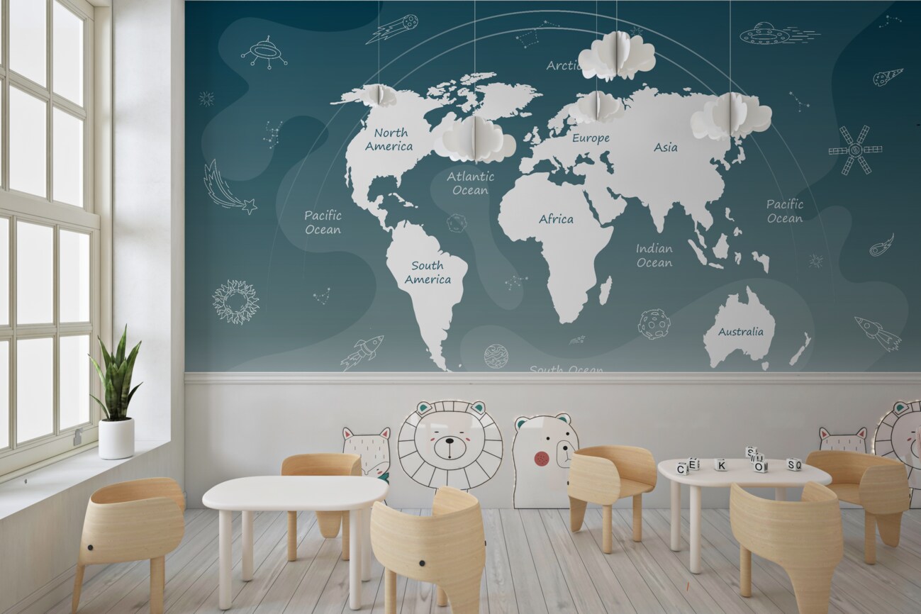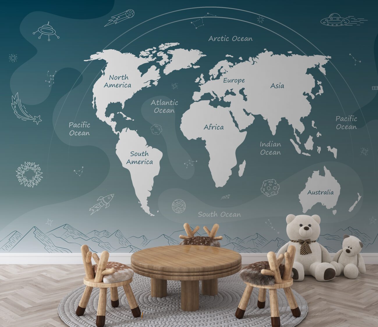Tapeta Fototapeta Minimalistyczna mapa świata (artykuł a100125 ) z kategorii Fototapety dla Dzieci