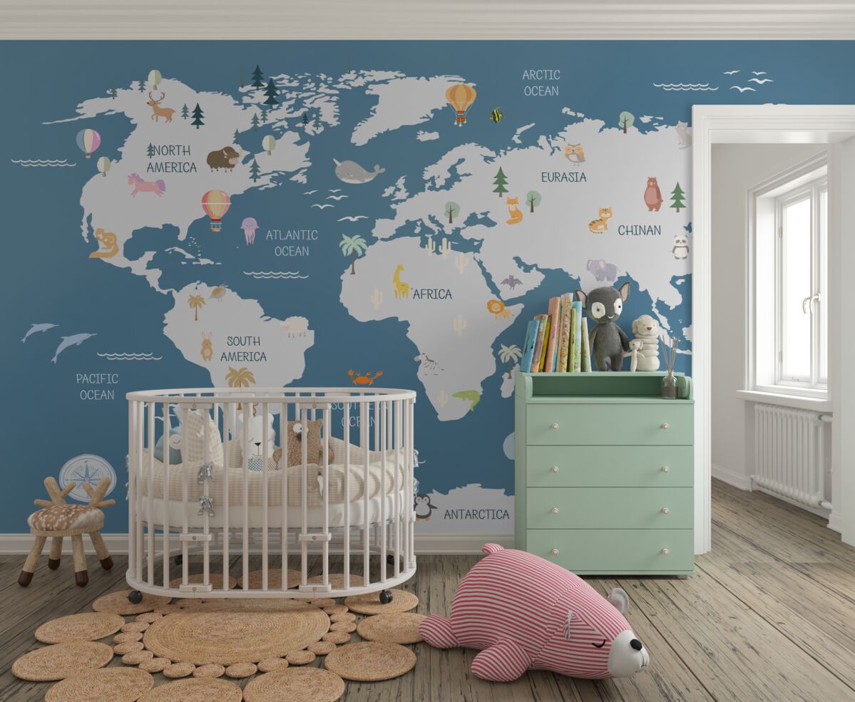 Tapeta Fototapeta Minimalistyczna mapa świata (artykuł a96585 ) z kategorii Fototapety dla Dzieci