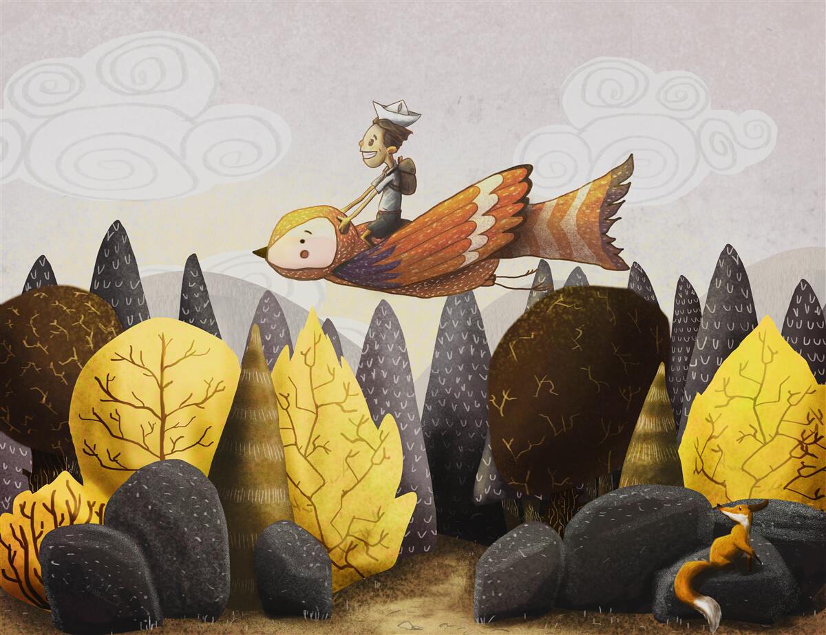 Tapeta Fototapeta Młody człowiek szczeka na ptaka (artykuł a98077 ) z kategorii Fototapety dla Dzieci