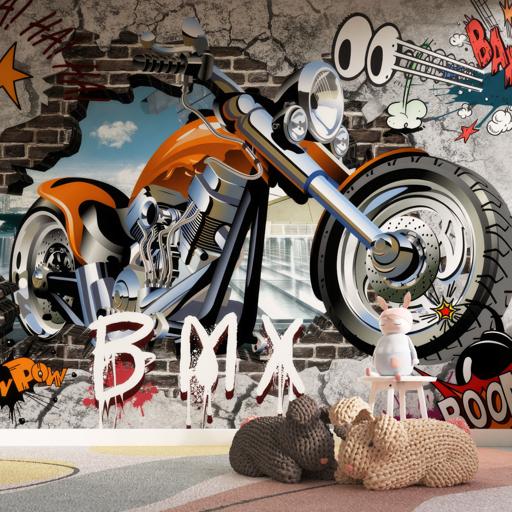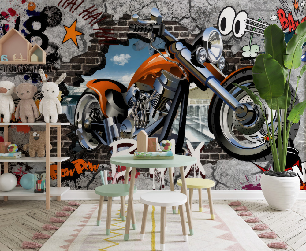 Tapeta Fototapeta motocykl na graffiti (artykuł a90161 ) z kategorii Fototapety dla Dzieci