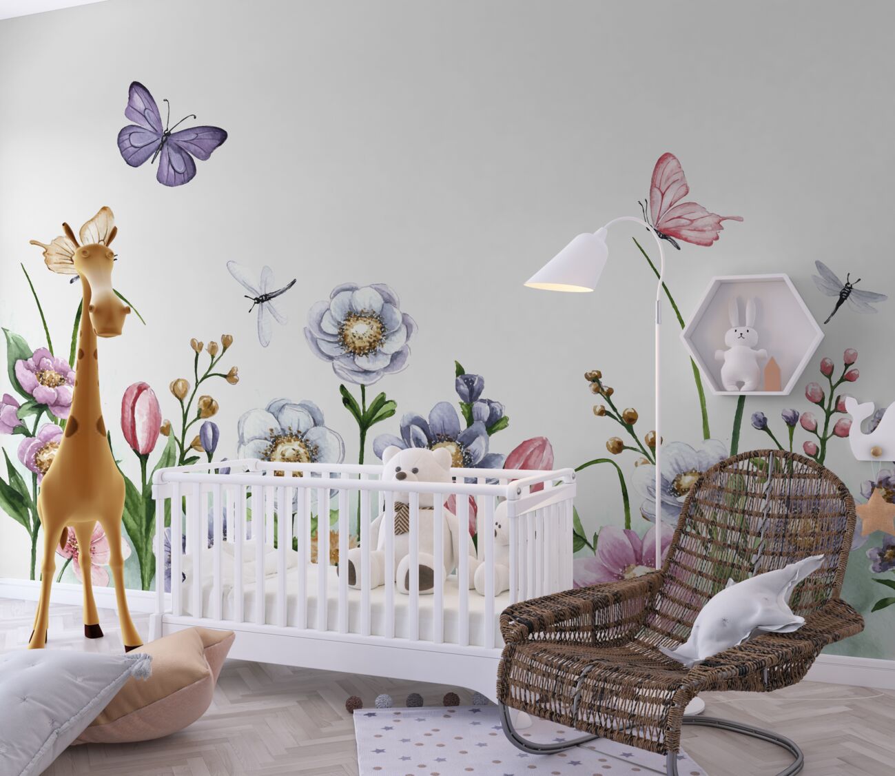 Tapeta Fototapeta Motyle drżą nad kwiatami (artykuł u13980 ) z kategorii Fototapety dla Dzieci