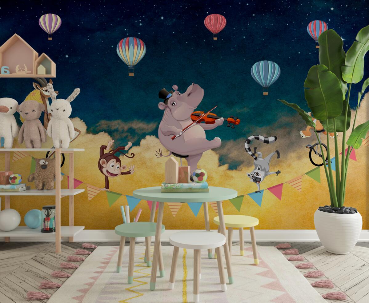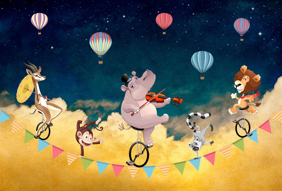 Tapeta Fototapeta Muzyczni akrobaci na linie (artykuł a98111 ) z kategorii Fototapety dla Dzieci