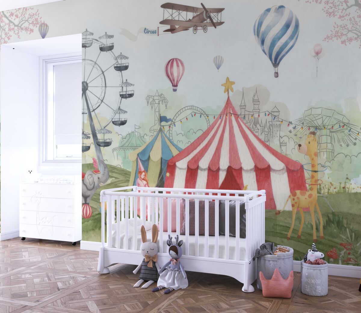 Tapeta Fototapeta Namiot cyrkowy i diabelski młyn (artykuł a97918 ) z kategorii Fototapety dla Dzieci