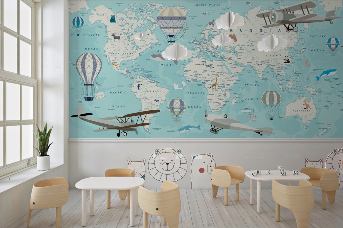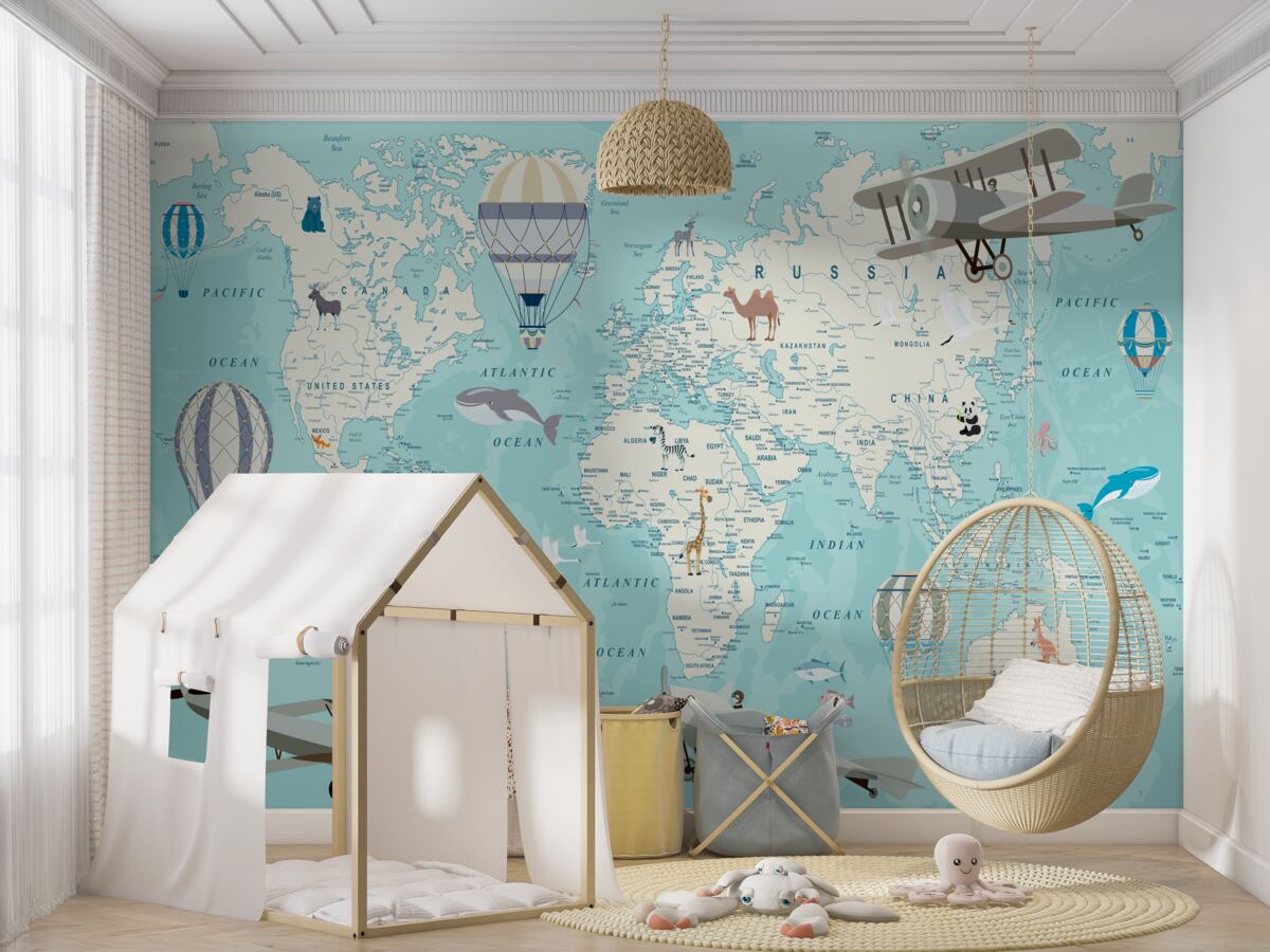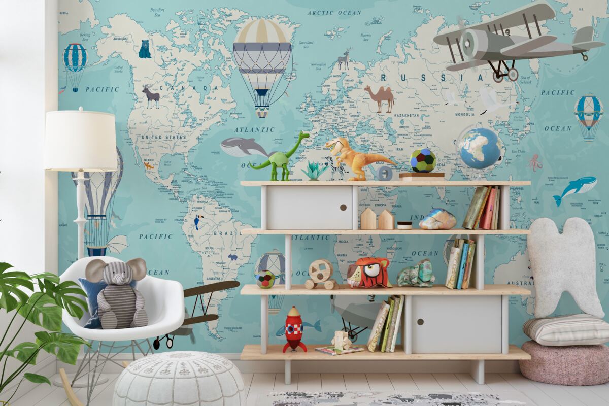 Tapeta Fototapeta Niebieska mapa świata dla chłopca (artykuł a98702 ) z kategorii Fototapety dla Dzieci