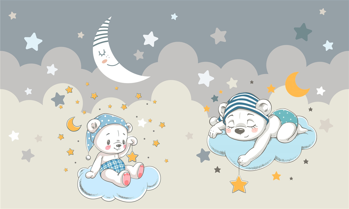 Tapeta Fototapeta Niedźwiadki idą spać (artykuł a98181 ) z kategorii Fototapety dla Dzieci