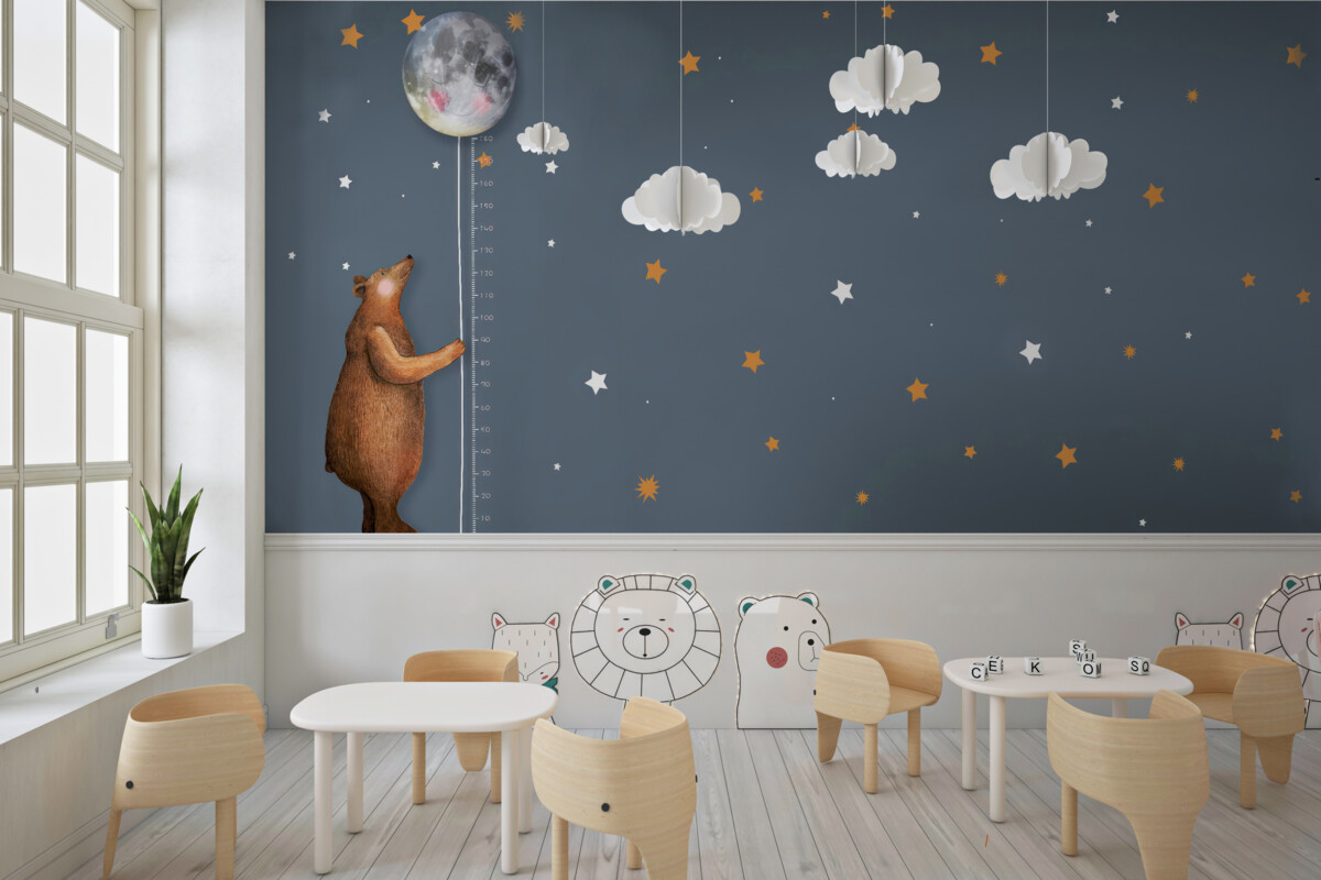 Tapeta Fototapeta Niedźwiedź umieszcza księżyc na niebie (artykuł a98199 ) z kategorii Fototapety dla Dzieci
