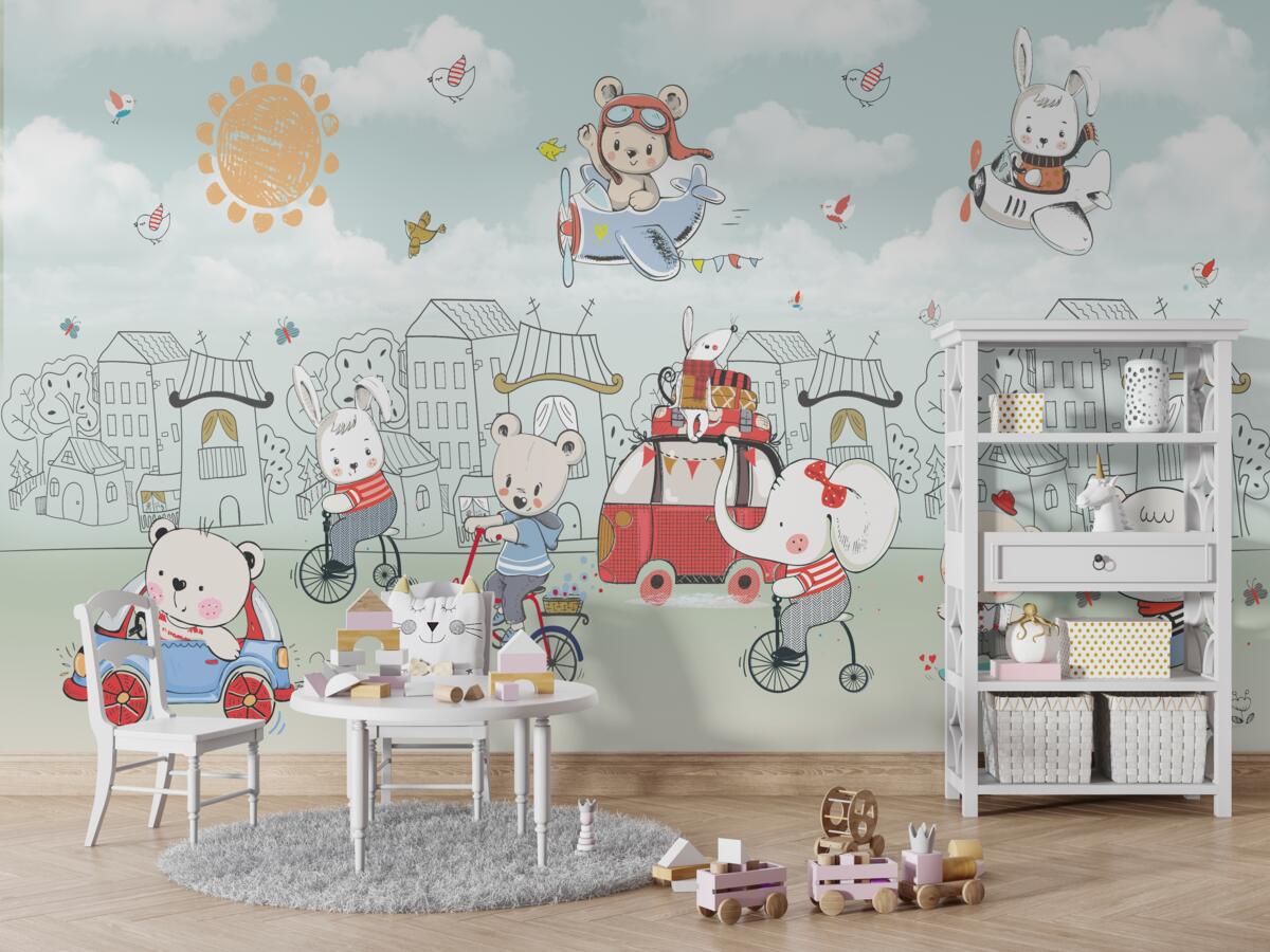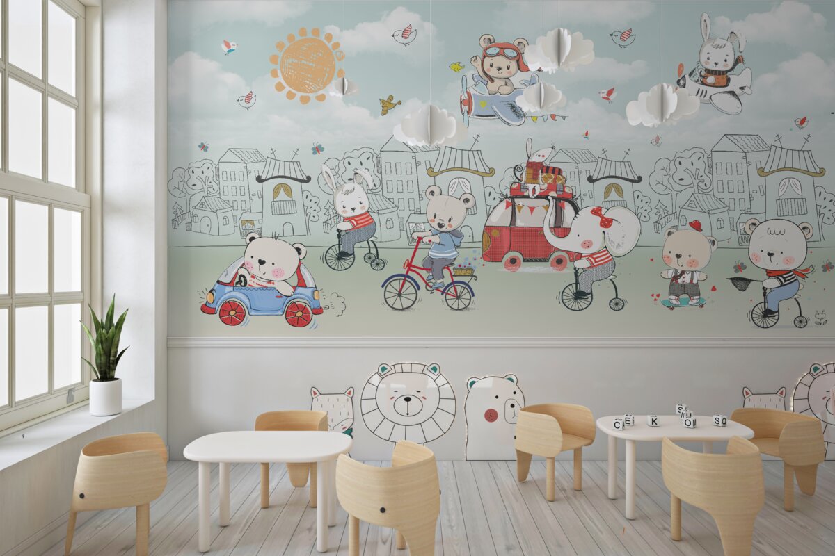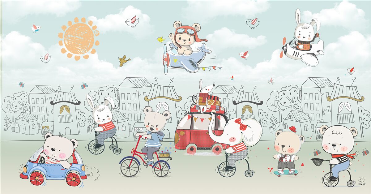 Tapeta Fototapeta Niedźwiedzie idą na spacer (artykuł a98191 ) z kategorii Fototapety dla Dzieci