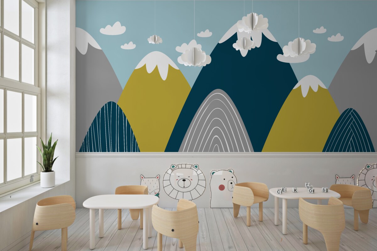 Tapeta Fototapeta Ośnieżone szczyty górskie (artykuł a98033 ) z kategorii Fototapety dla Dzieci