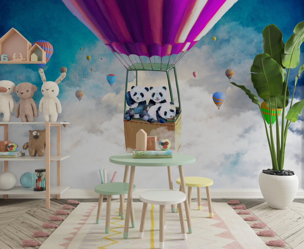 Tapeta Fototapeta Panda leci balonem na ogrzane powietrze (artykuł a98972 ) z kategorii Fototapety dla Dzieci