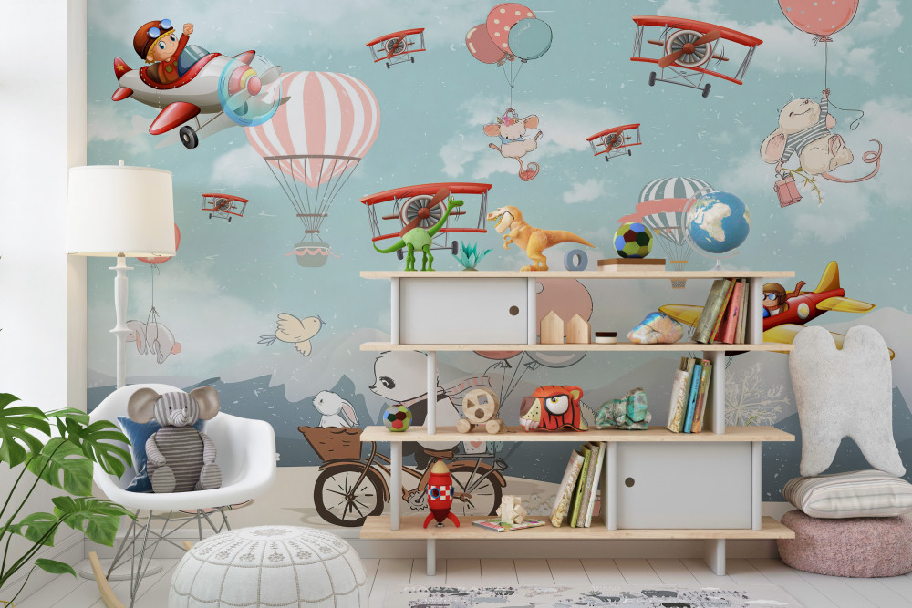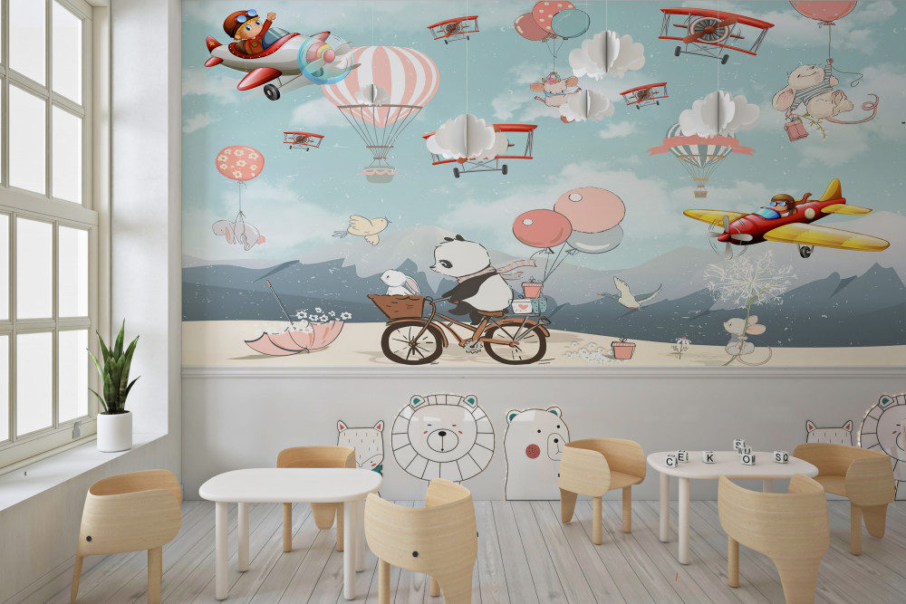 Tapeta Fototapeta panda na rowerze i inne latające zwierzęta (artykuł a93917 ) z kategorii Fototapety dla Dzieci