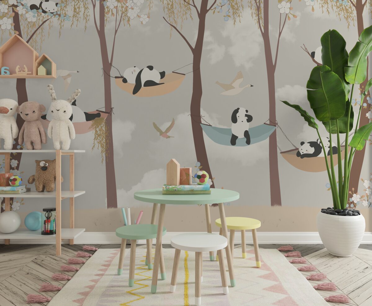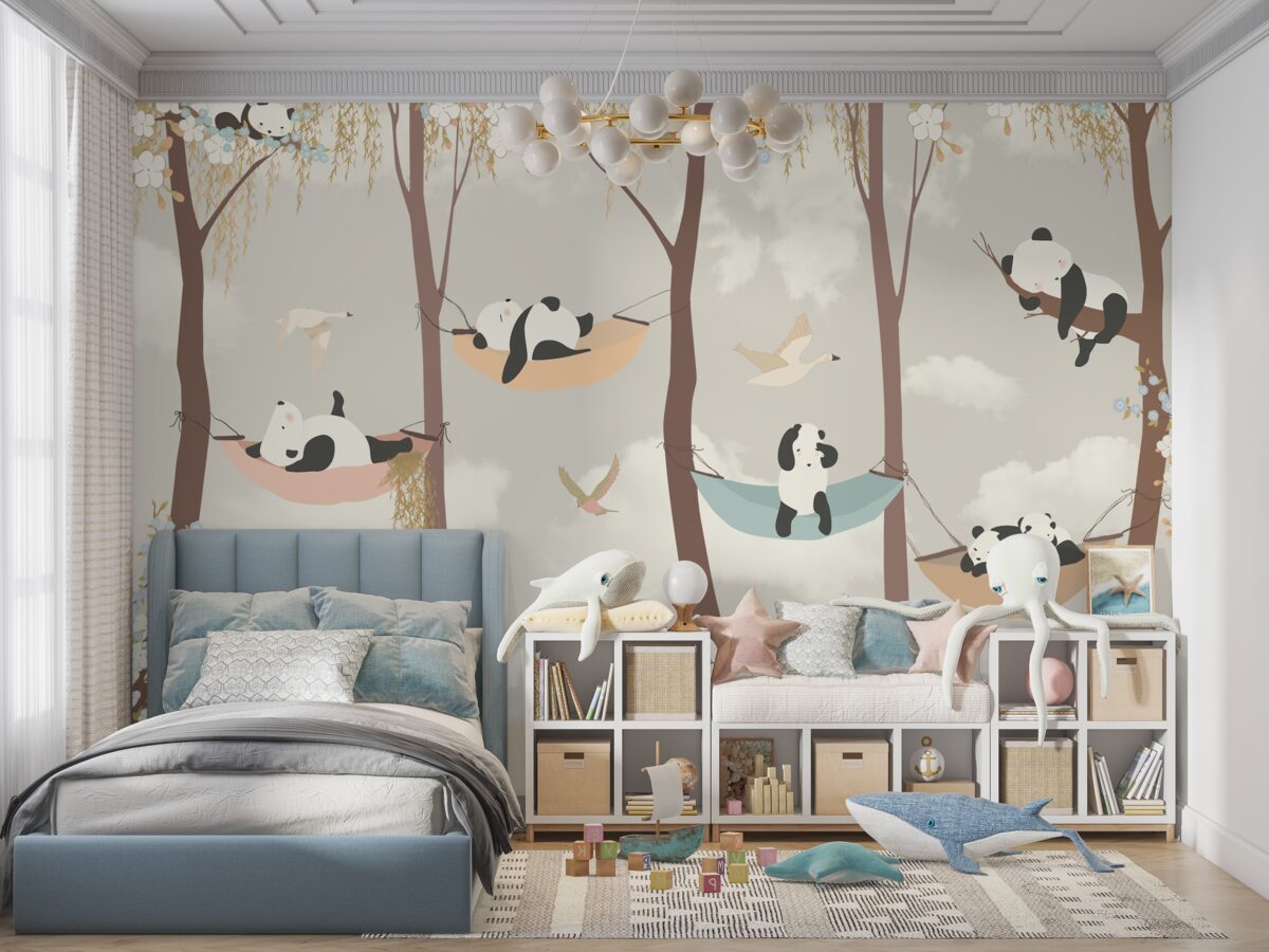 Tapeta Fototapeta Panda odpoczywa na hamakach (artykuł a94189 ) z kategorii Fototapety dla Dzieci