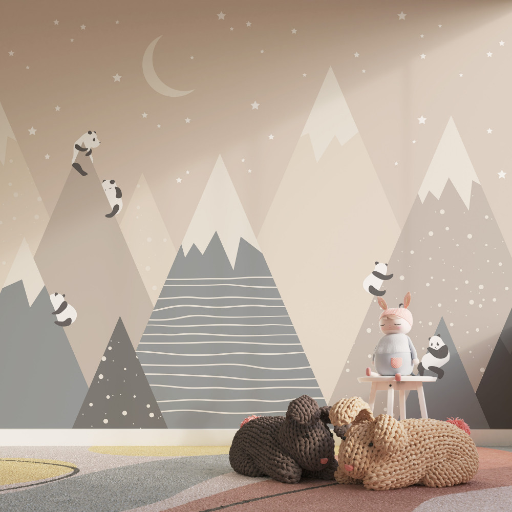 Tapeta Fototapeta panda wspina się po górach (artykuł a93870 ) z kategorii Fototapety dla Dzieci
