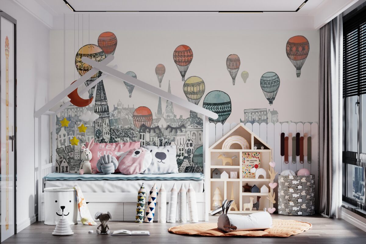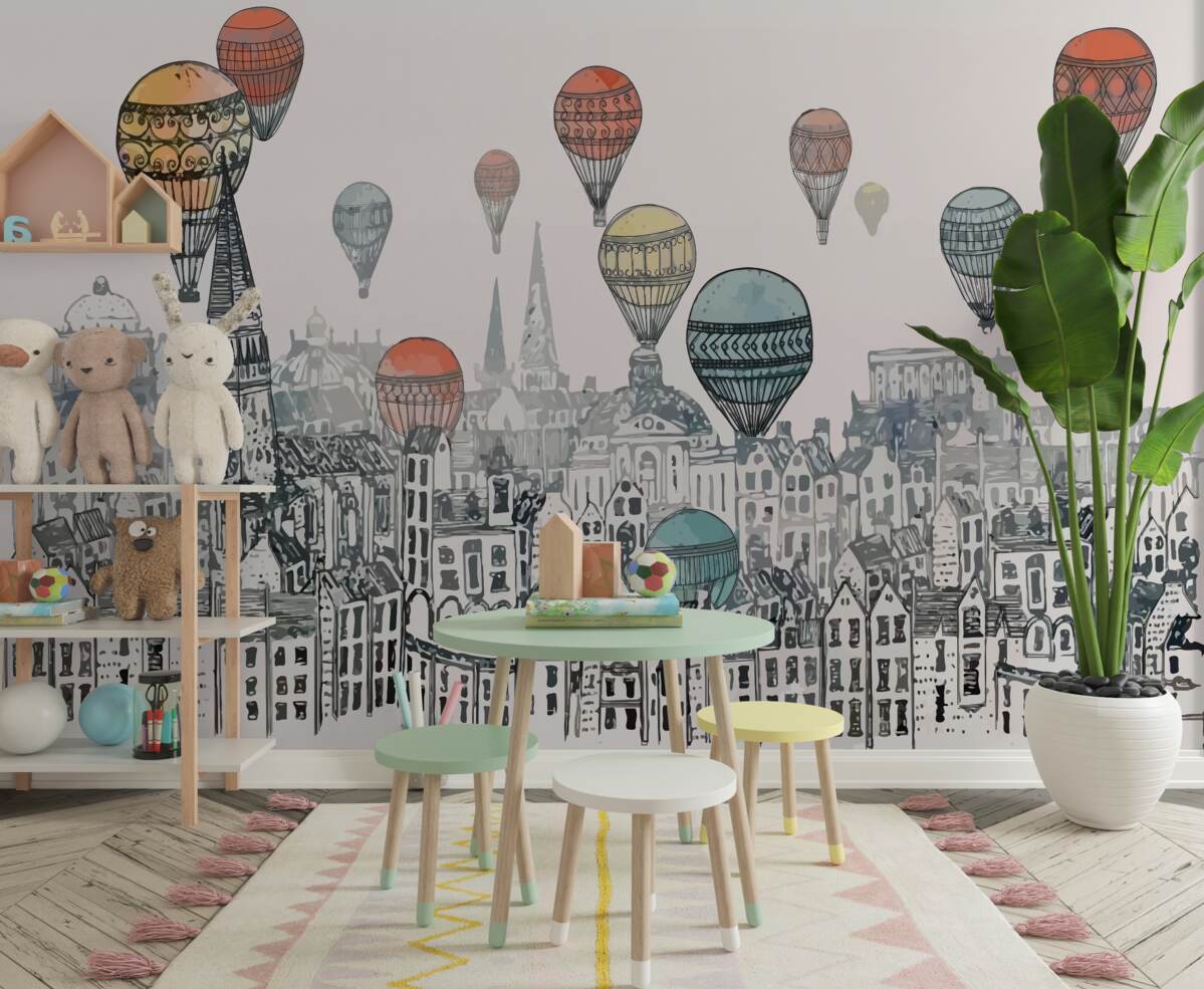 Tapeta Fototapeta Parada balonów nad miastem (artykuł a98069 ) z kategorii Fototapety dla Dzieci