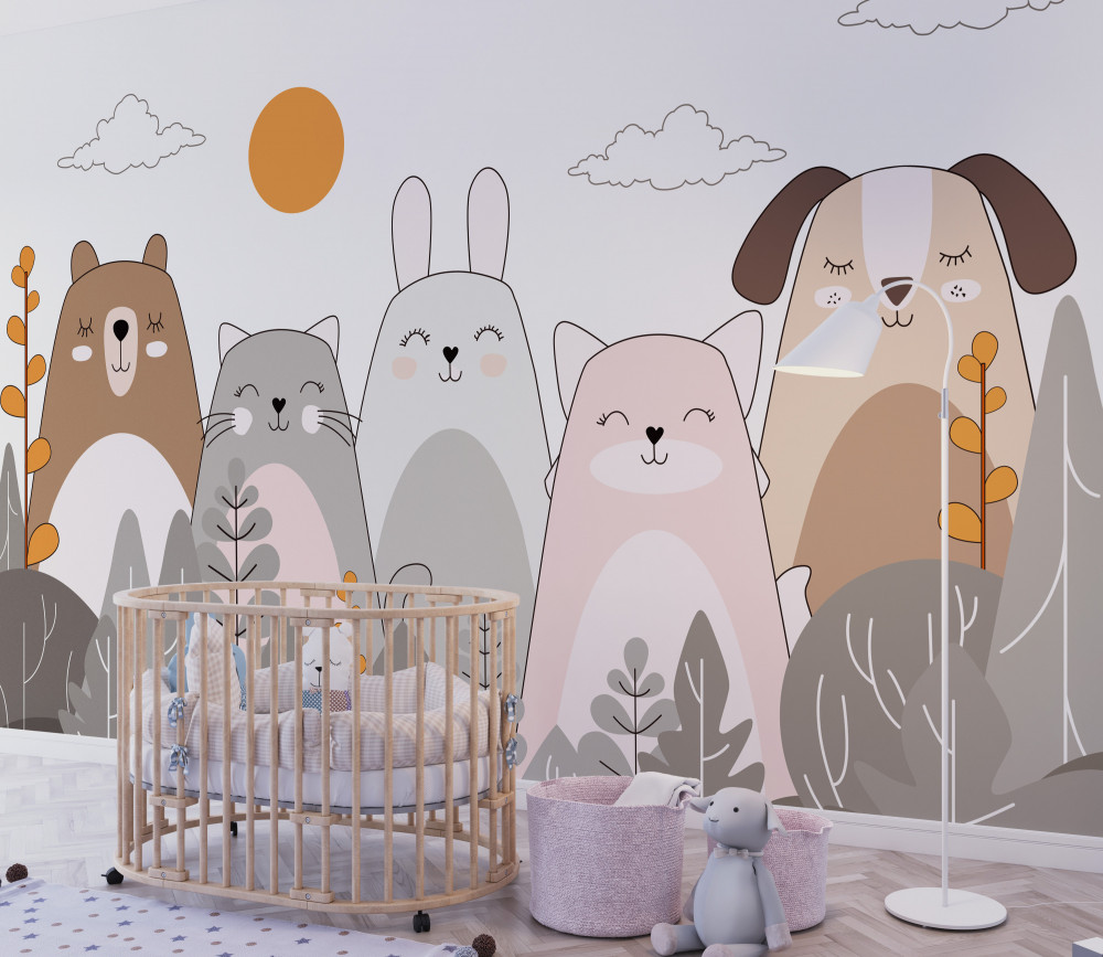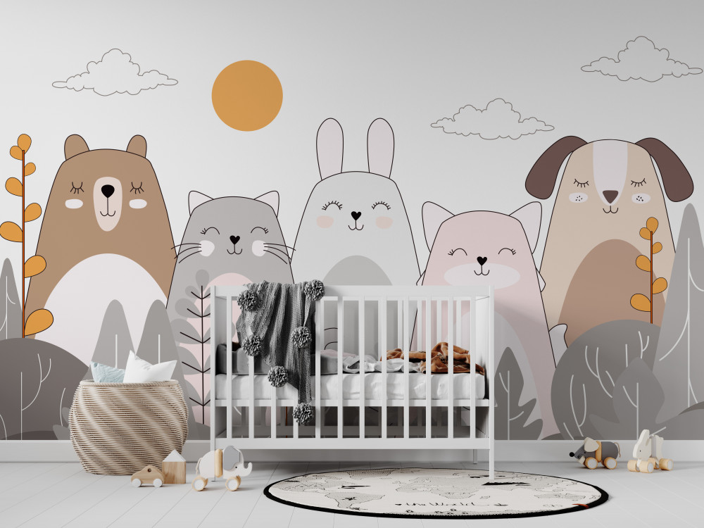 Tapeta Fototapeta pięć uśmiechniętych zwierząt (artykuł a93894 ) z kategorii Fototapety dla Dzieci