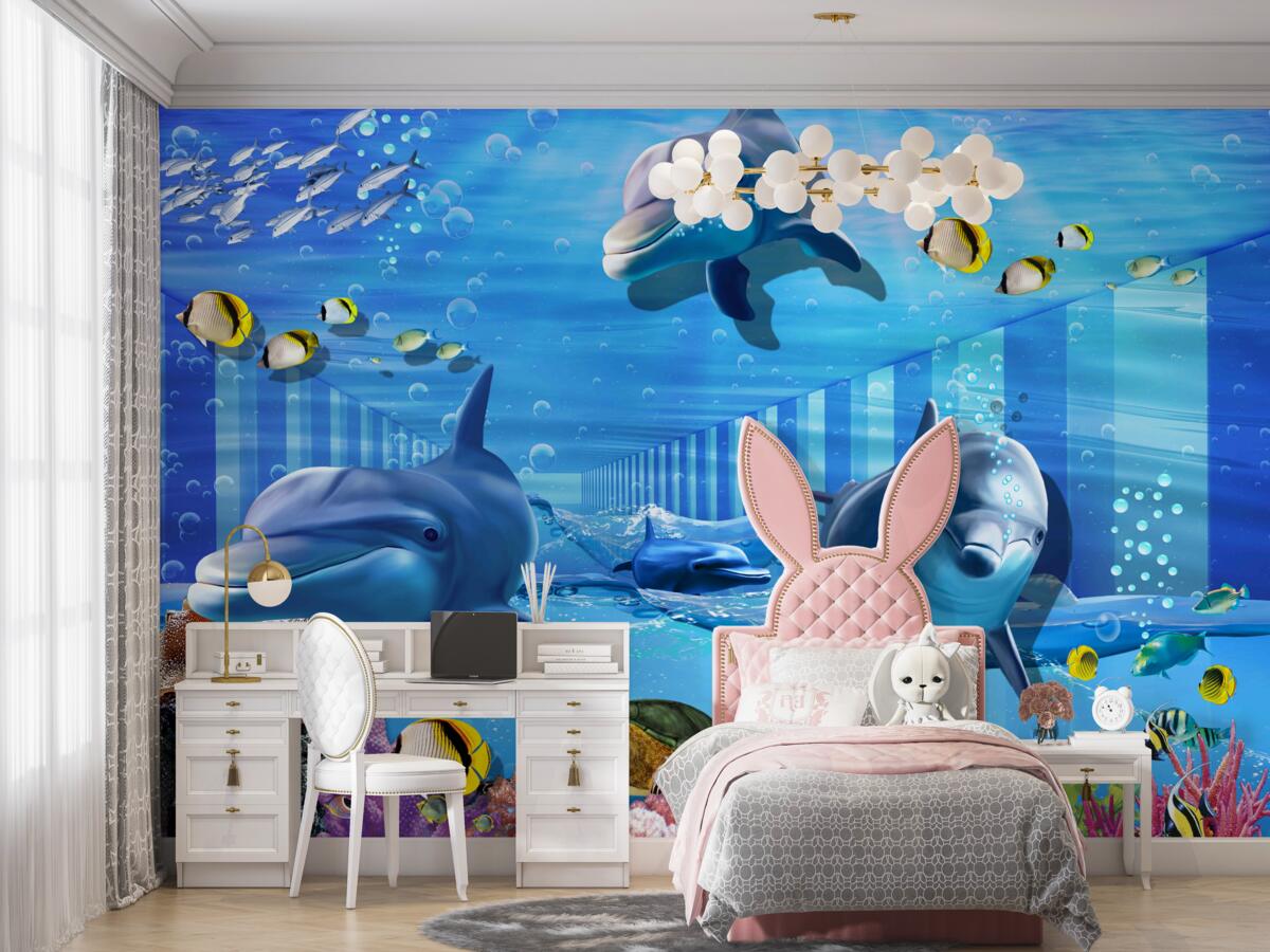 Tapeta Fototapeta Podwodni mieszkańcy tunelu (artykuł a98786 ) z kategorii Fototapety dla Dzieci