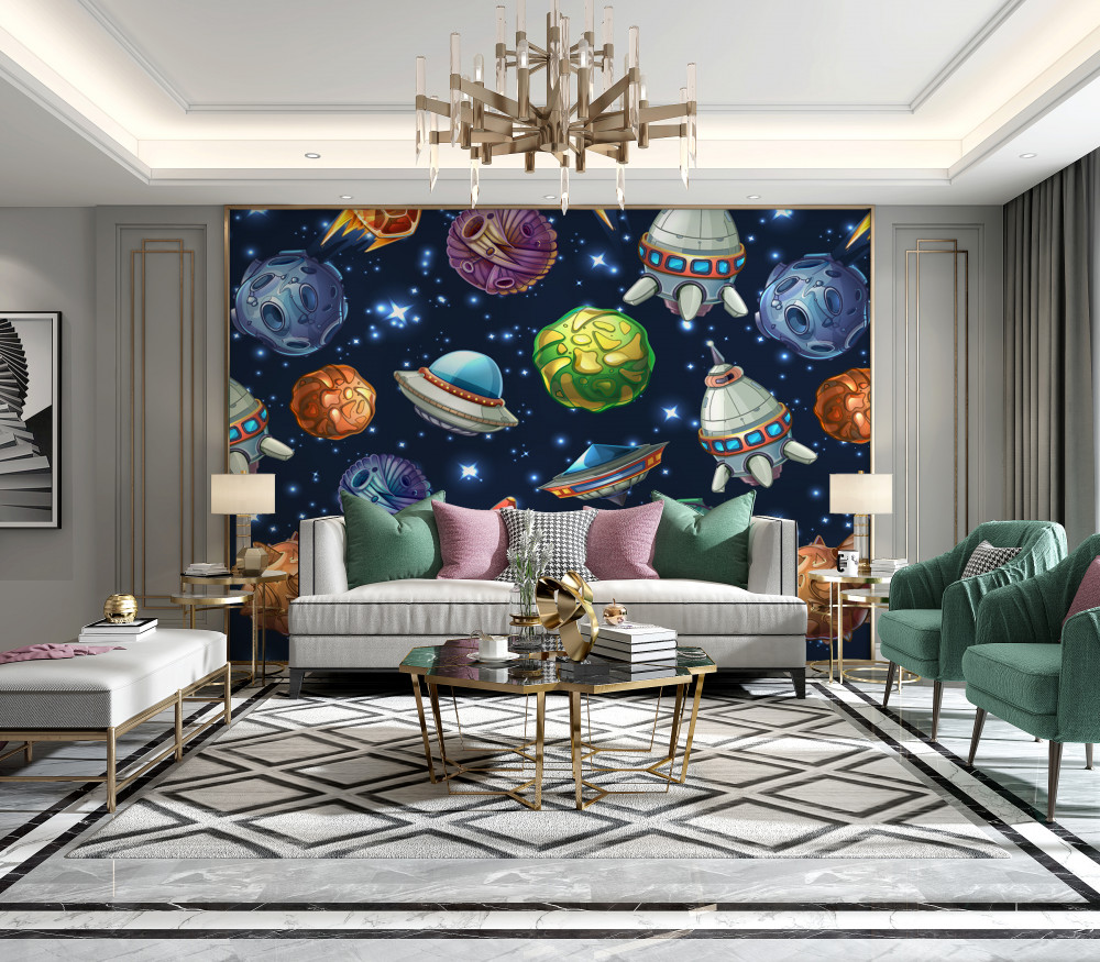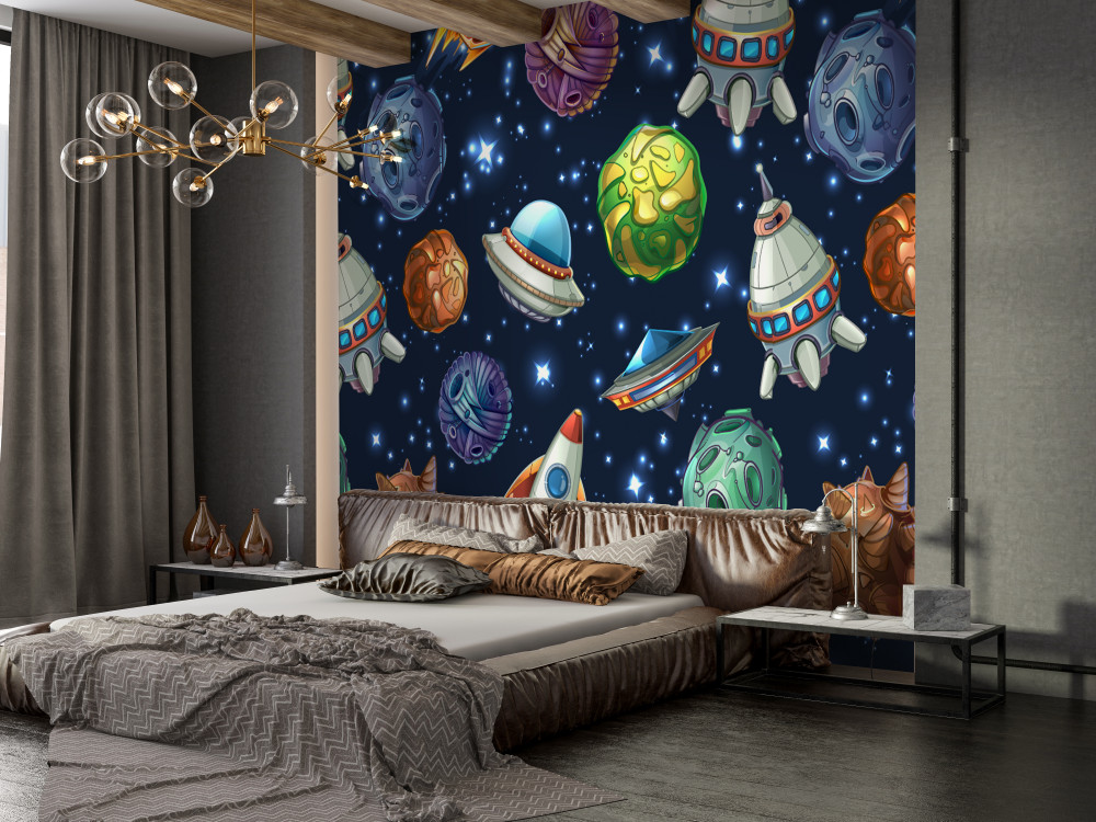 Tapeta Fototapeta pojazdy latające i komety w kosmosie (artykuł a92945 ) z kategorii Fototapety dla Dzieci