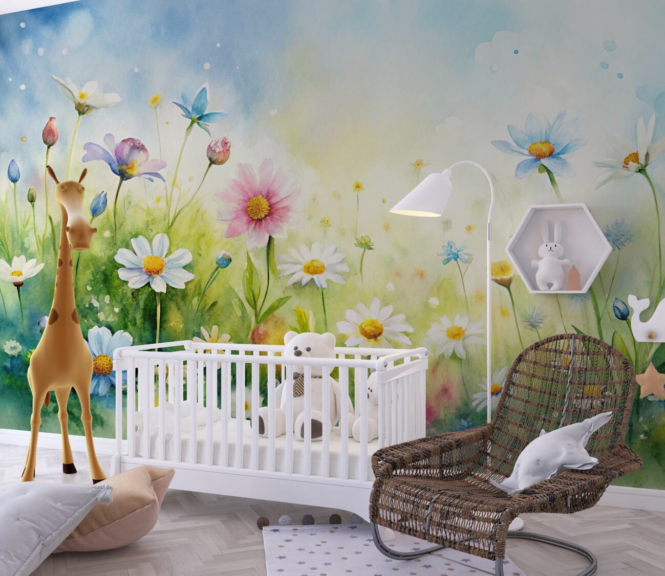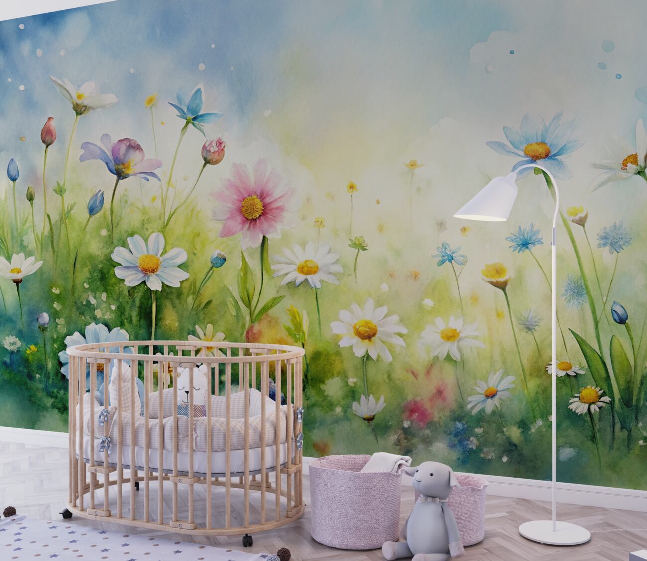 Tapeta Fototapeta Pole różnych kwiatów (artykuł a100103 ) z kategorii Fototapety dla Dzieci