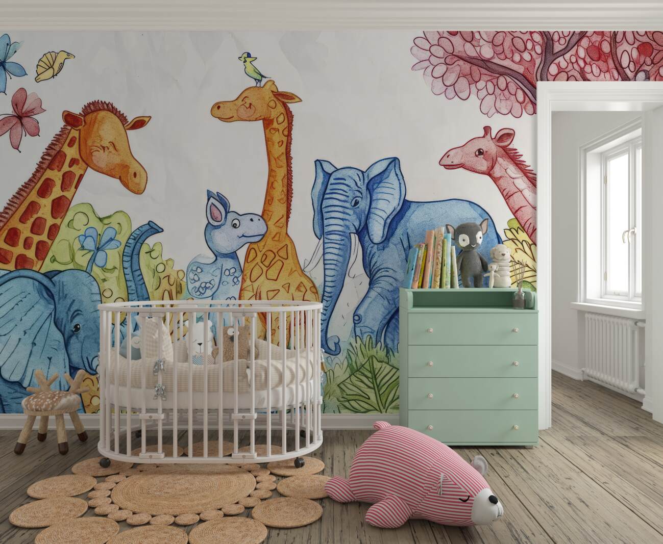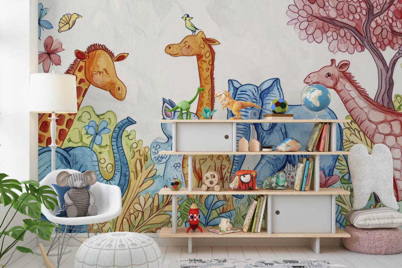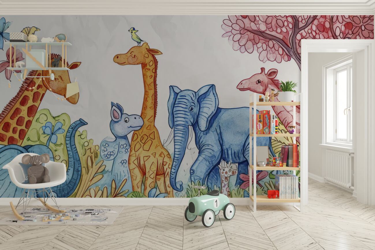Tapeta Fototapeta Przejście słoni i żyraf (artykuł u14643 ) z kategorii Fototapety dla Dzieci