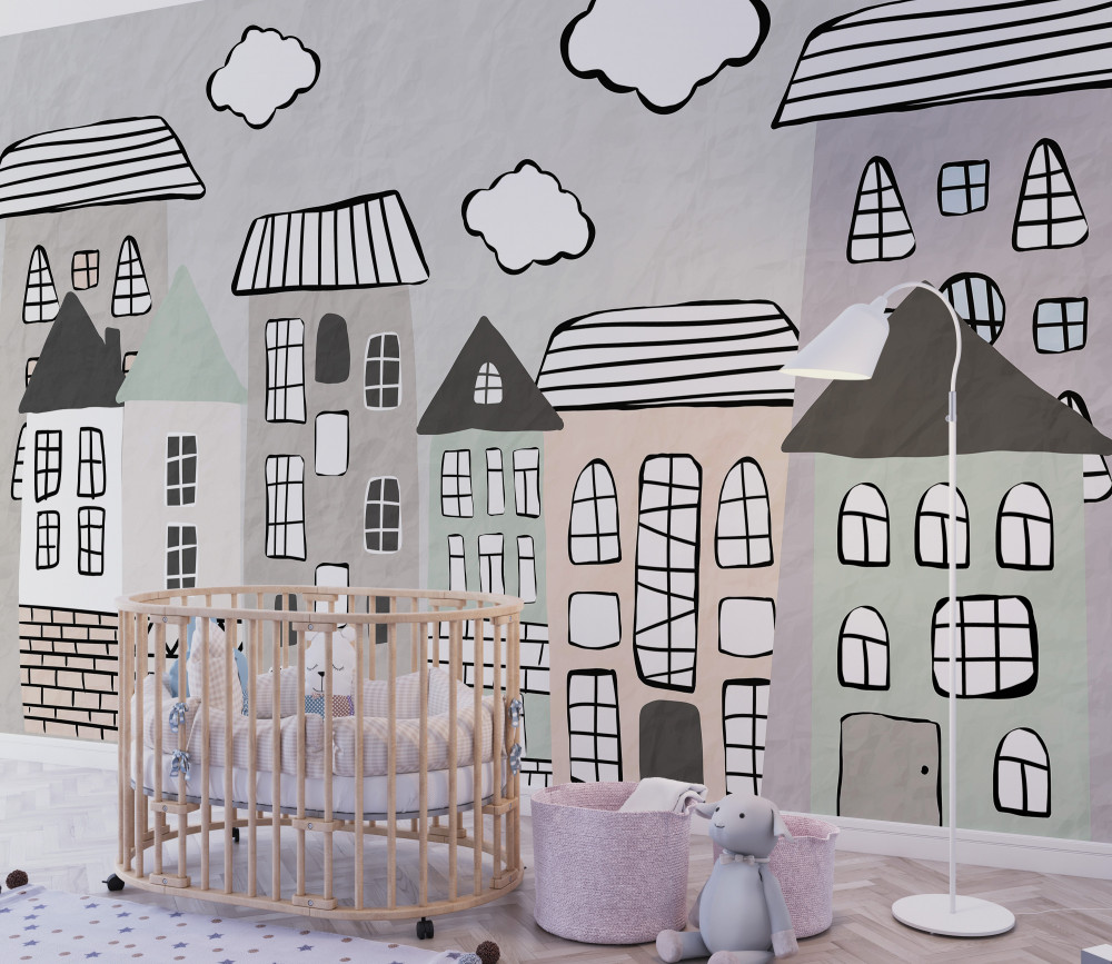Tapeta Fototapeta przypadkowo narysowane domy (artykuł a93880 ) z kategorii Fototapety dla Dzieci